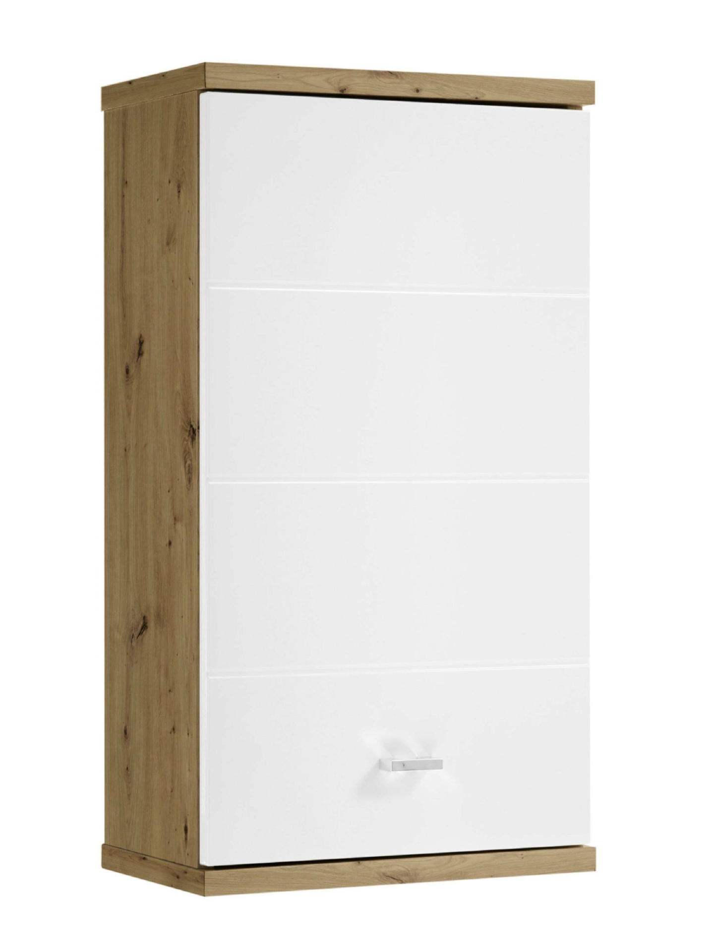 The Pool Wall Unit brings a sleek, space-saving solution to your bathroom with its Artisan Oak build and glossy white front featuring a lined notch design. This wall-mounted cupboard has two spacious shelves behind its door, offering generous storage to keep your bathroom tidy and organised. The silver handle adds a refined touch to its modern design. Whether you’re storing toiletries or essentials.