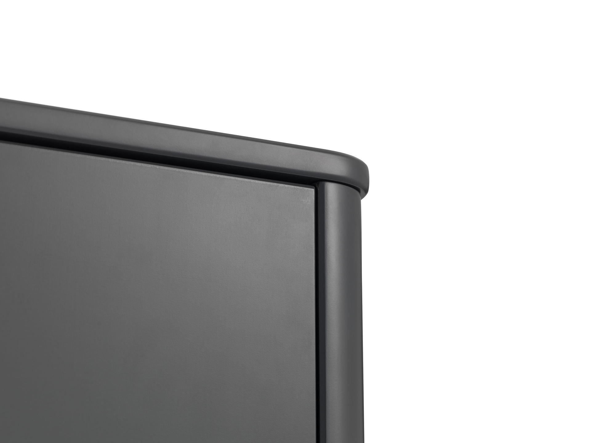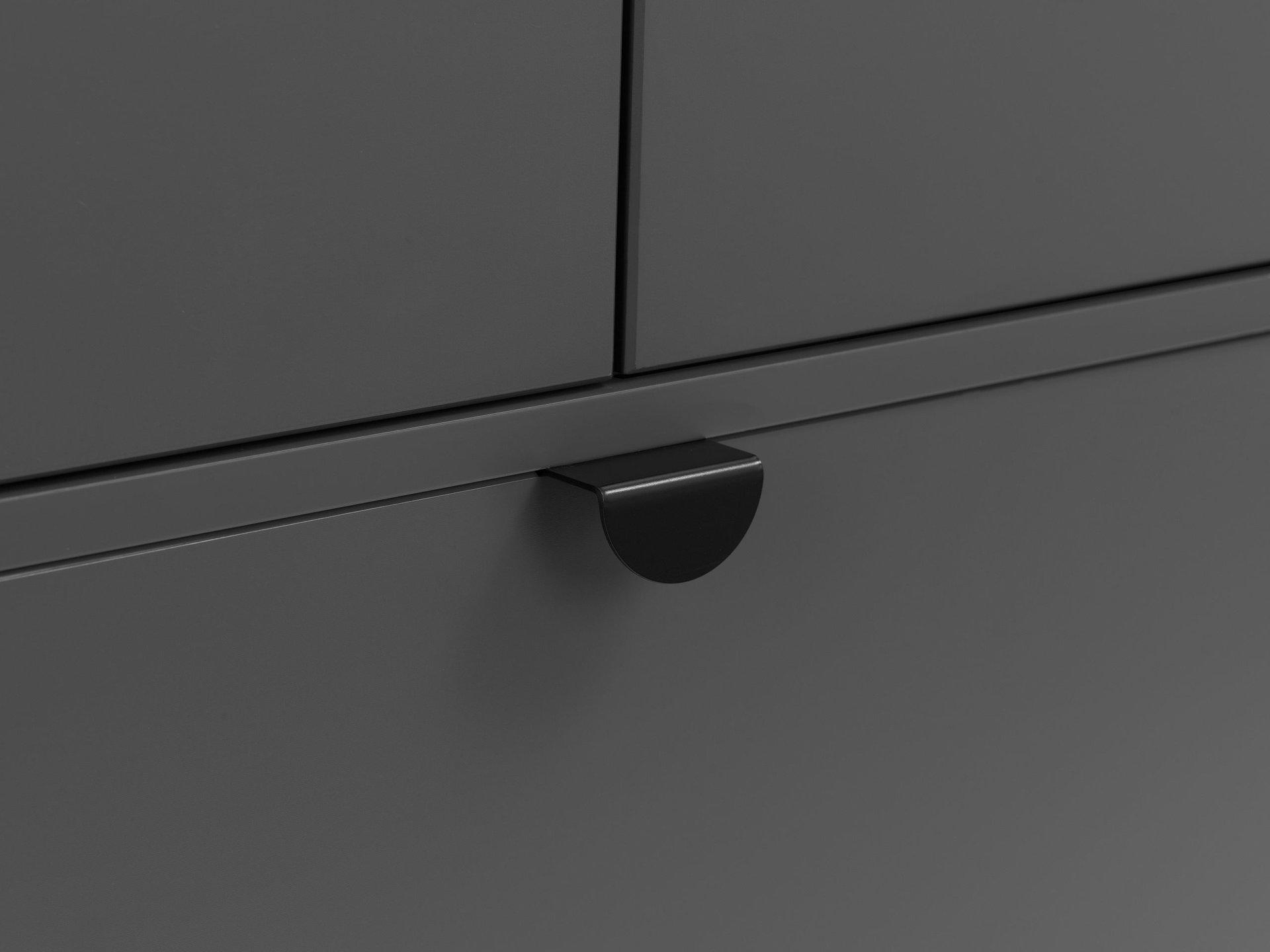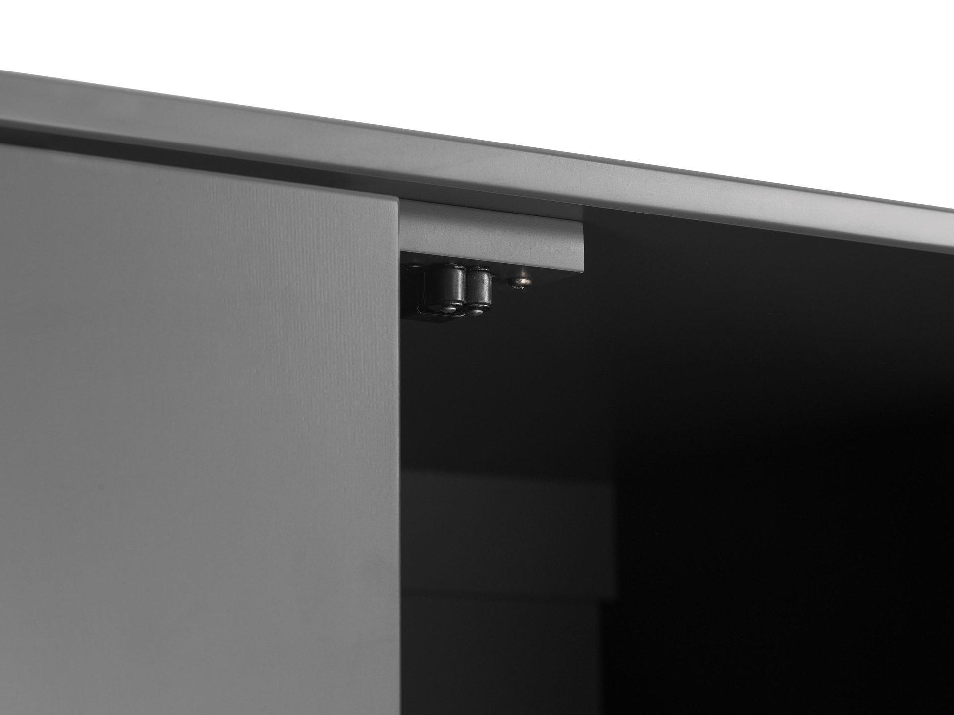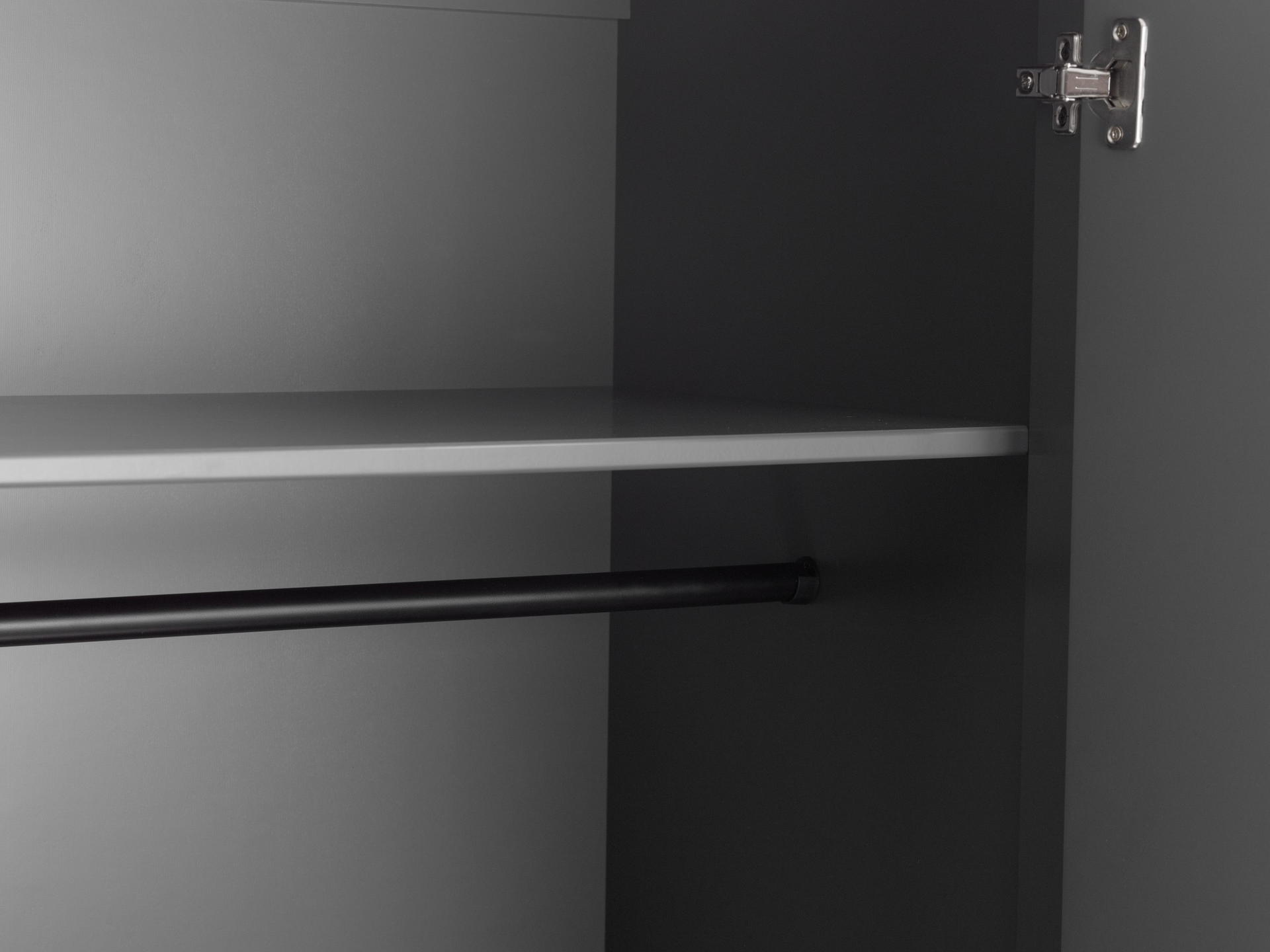 The Chloe Bedroom collection has a modern, retro style finished in a storm grey lacquer with satin black wooden legs and handles. The corners are rounded for a softer look, creating perfect balance between style and functionality. This wardrobe features a large hanging area behind 2 doors, along with a drawer for additional storage.