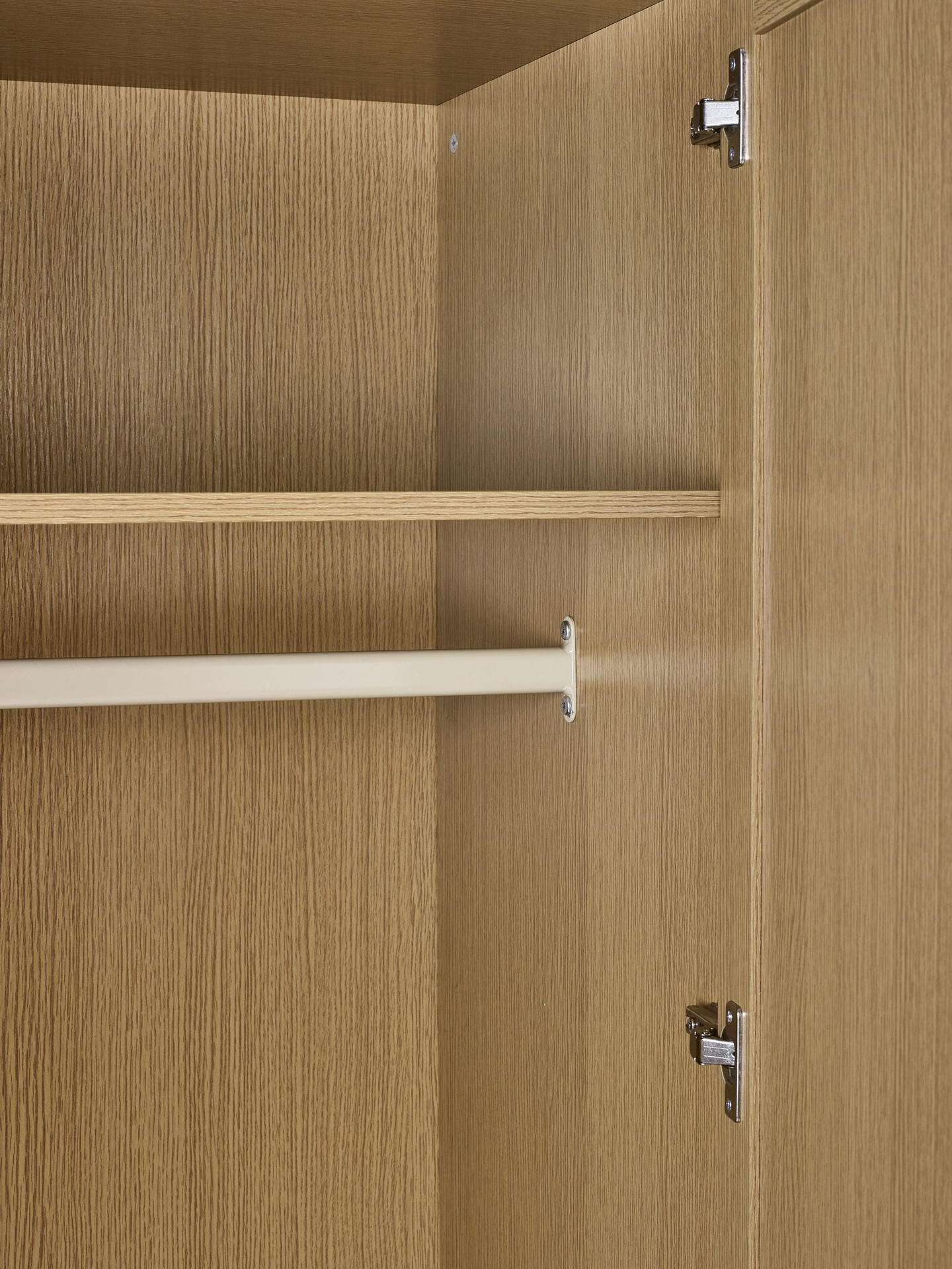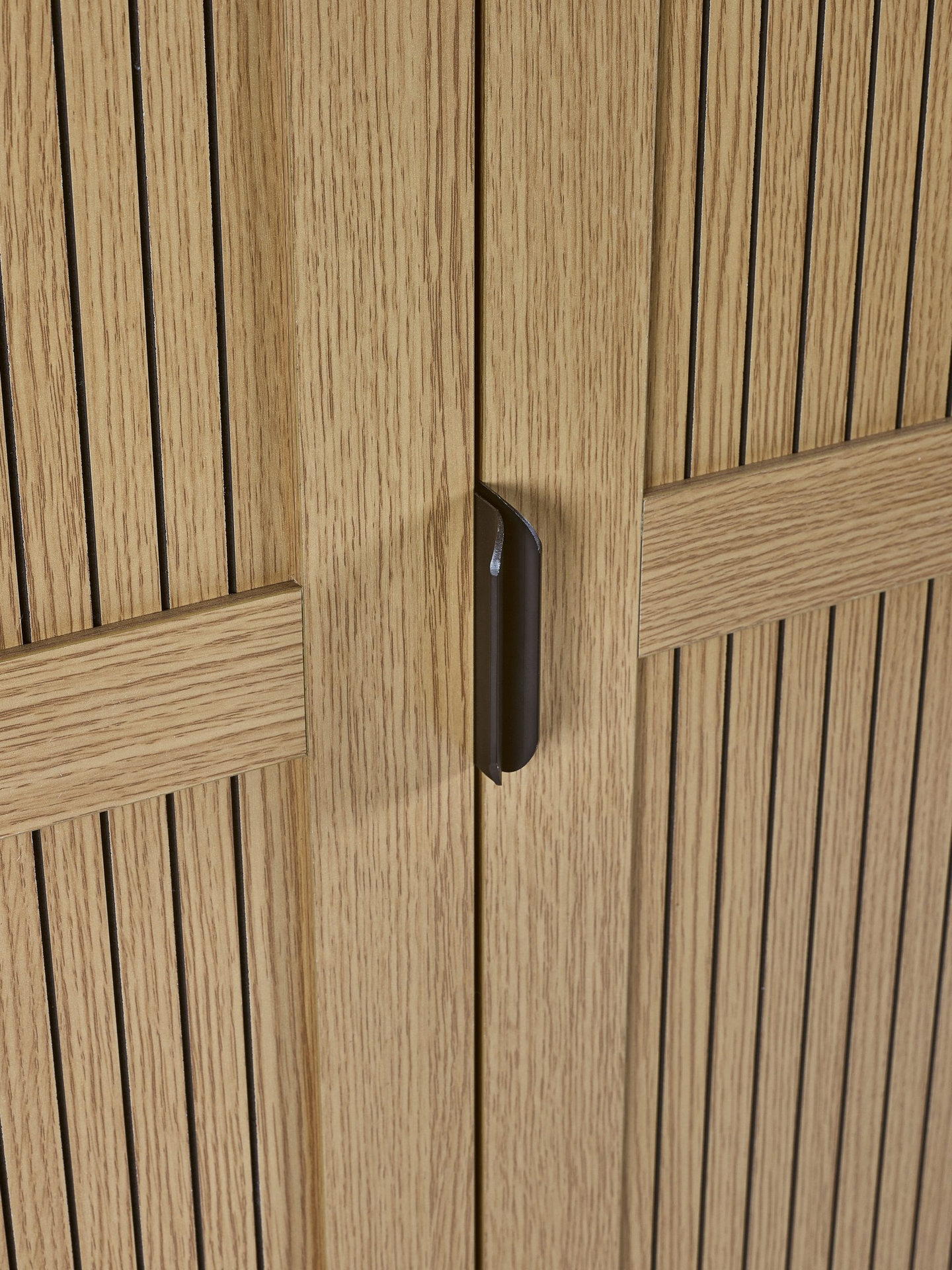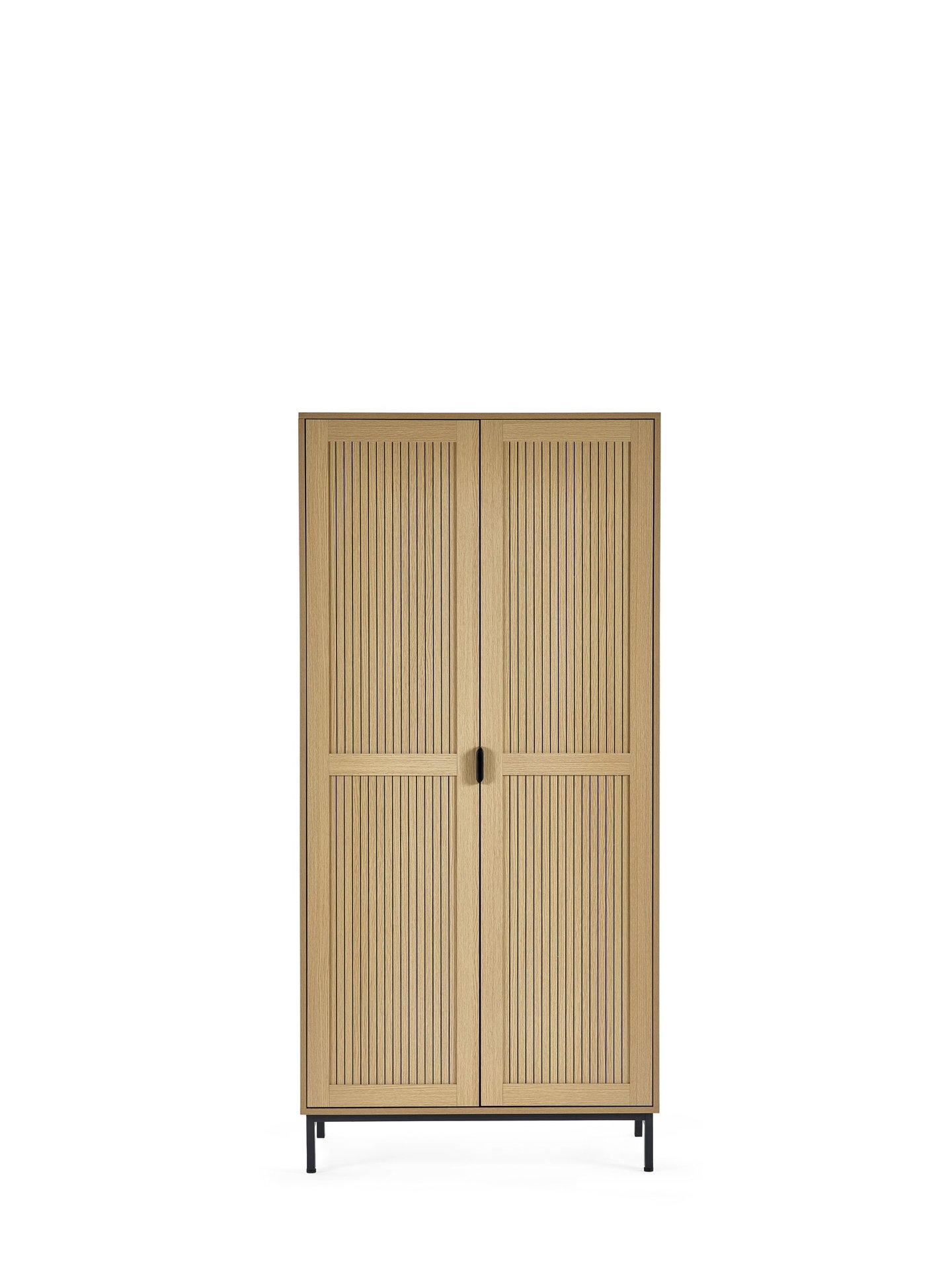 Elevate your storage experience with the Sia 2 Door Wardrobe. Featuring beautiful vertical slatted effect doors and a spacious interior, this wardrobe seamlessly blends style and functionality. Designed to keep your clothing and accessories organised, it offers ample hanging space along with two shelves to fulfill all your storage needs. The sleek black handles provide a refined touch, enhancing its modern appeal. The combination of warm wood tones and sleek black legs adds a contemporary twist to traditional design, making it a striking focal point in any bedroom. Easy assembly makes it a breeze to incorporate into your decor. Requires minimal assembly for your convenience.