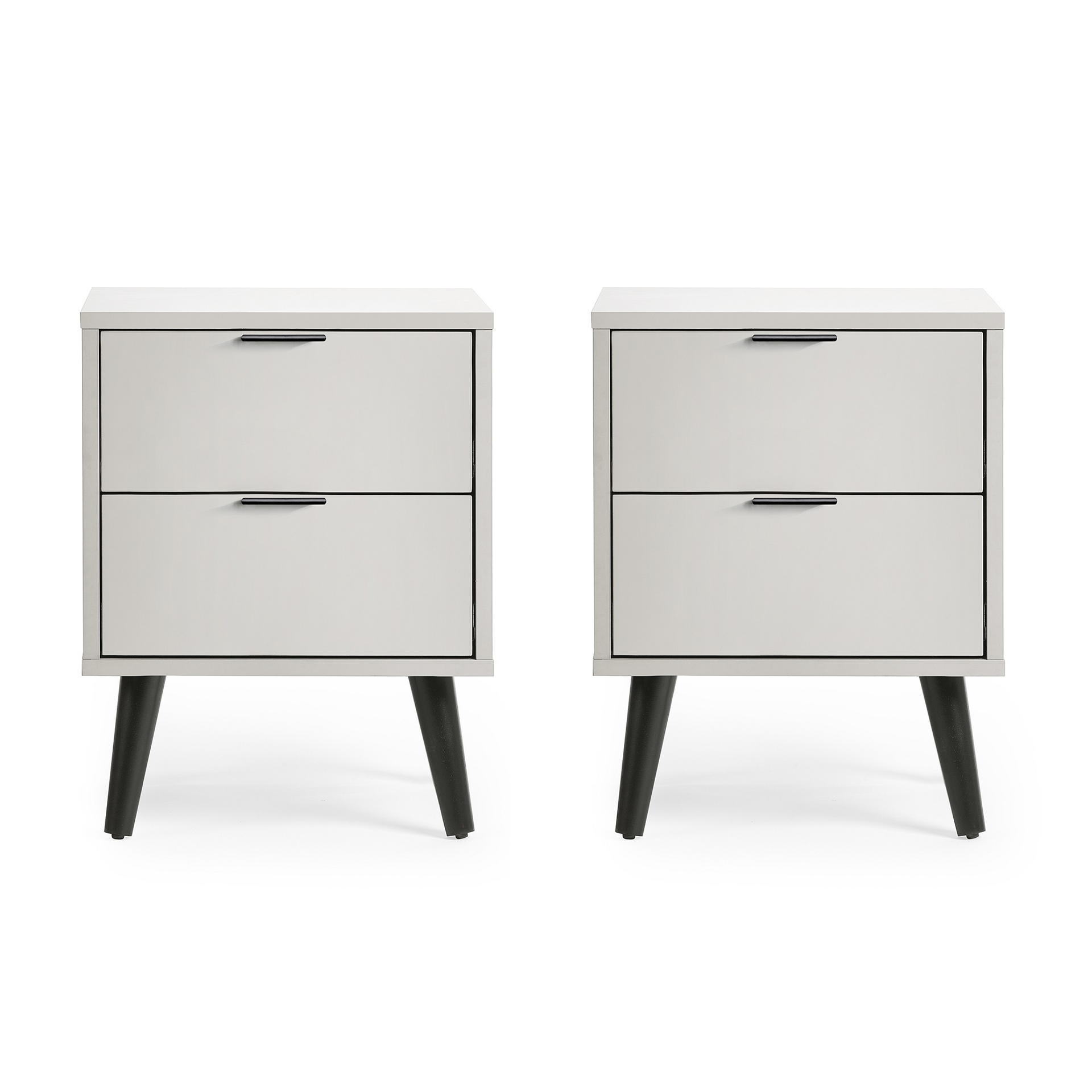 The Alba 2 Drawer Bedside in Silk Grey seamlessly combines sleek modernity with a touch of elegance. Its light grey lacquered finish is beautifully complemented by matte black handles and legs, adding a stylish accent to any bedroom décor. Featuring two spacious, soft-close drawers, it offers smooth, quiet operation and ample storage for your essentials. With its clean lines and minimalist design, this piece is perfect for enhancing both the functionality and aesthetic of your space.
