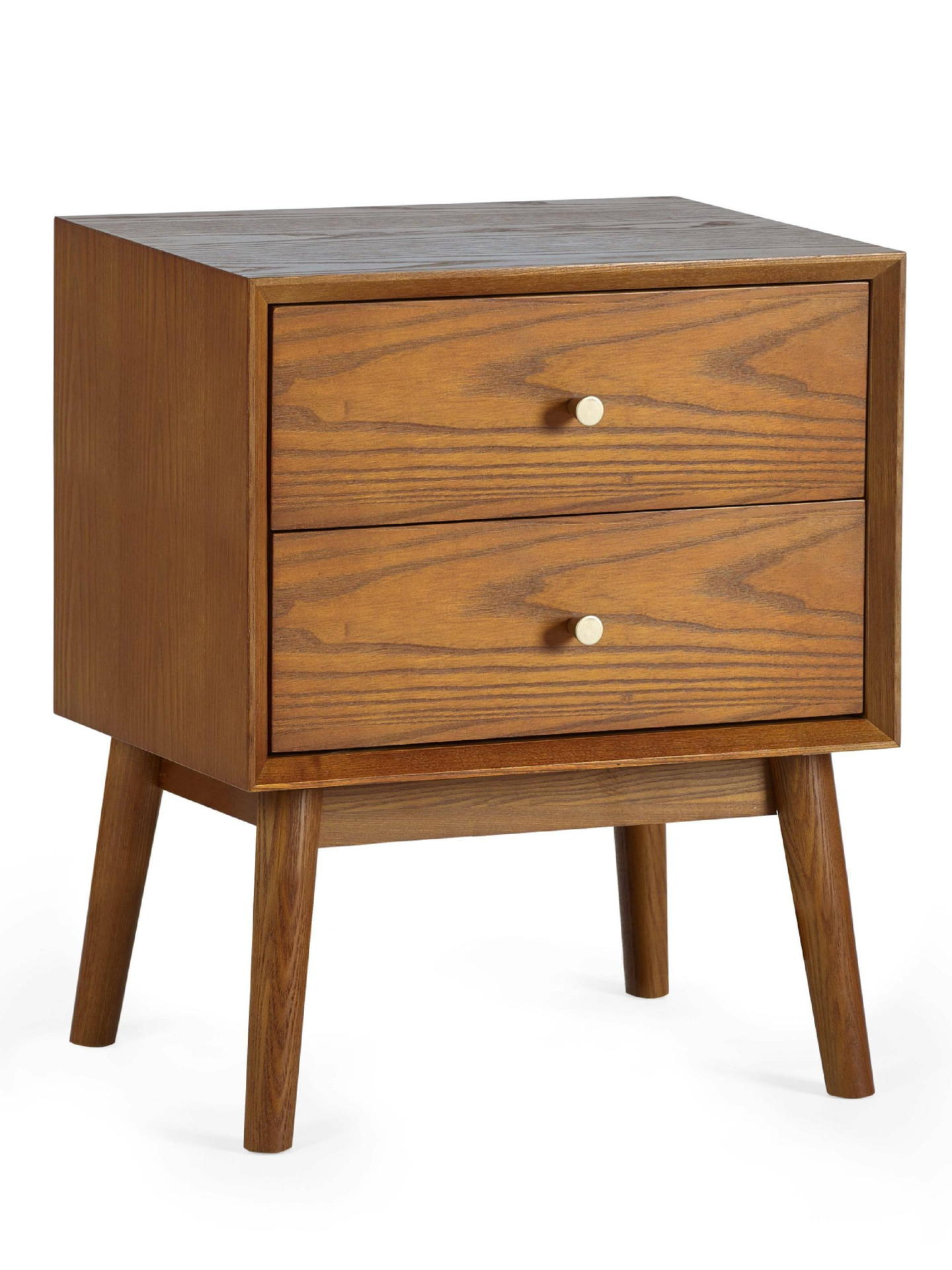 A retro-inspired style with a nostalgic feel, the Lowry Bedroom collection is a gorgeous timeless design that will add character and depth to any bedroom space. Constructed from an exquisite cherry ash wood veneer with beautifully tapered legs, complemented by golden framed knobs. The Lowry 2-drawer bedside features 2 drawers suitable for storing away nighttime essentials.