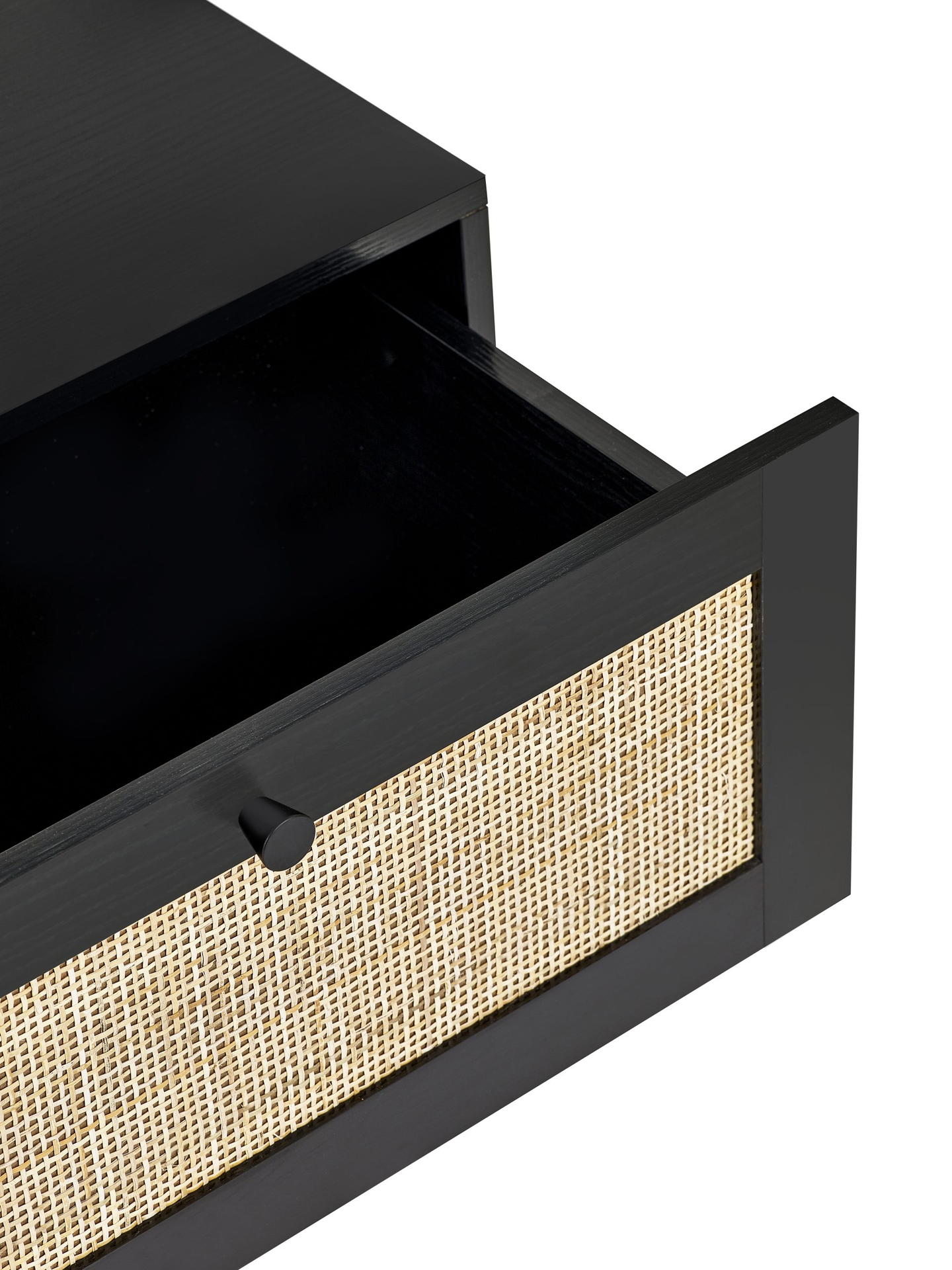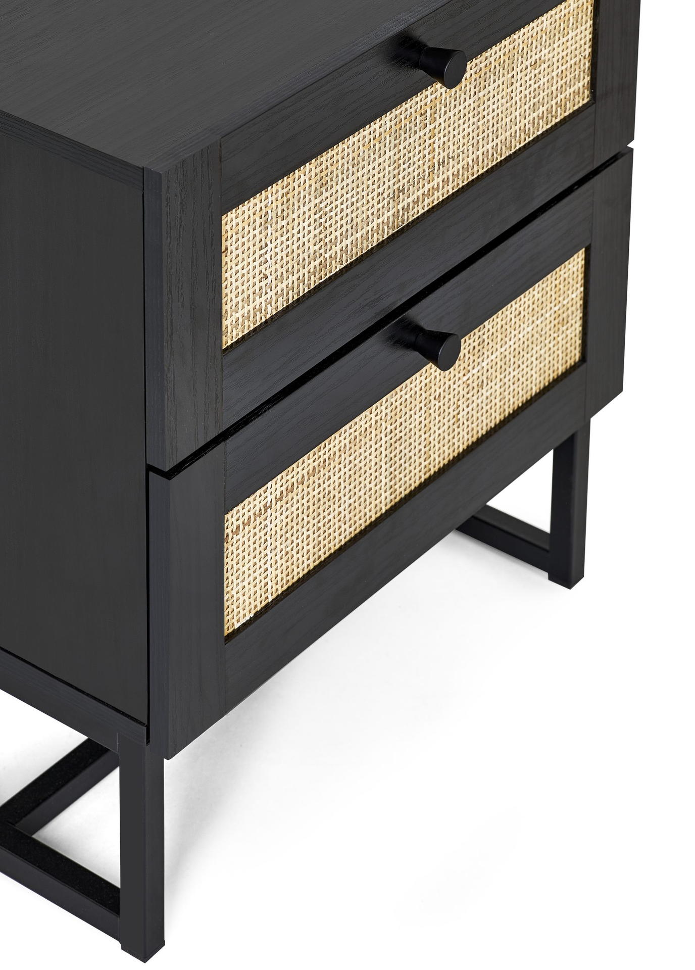 Fusing modern construction with retro design elements, the Padstow collection will exquisitely complement any styled home. The natural rattan fronts and industrial-style base collaborate perfectly to leave a warm yet chic aesthetic in your home. This range includes a bedside, 3 drawer chest, 6 drawer chest, wardrobe, coffee table, TV unit, sideboard, and tall bookcase. Also available in an oak finish.