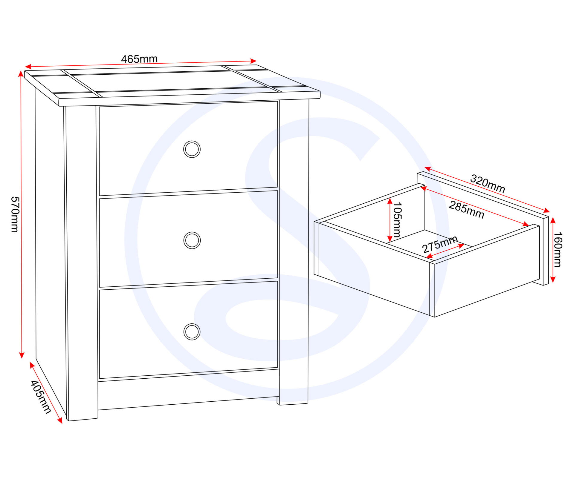 Dimensions 40510 × 46510 × 57010 cm