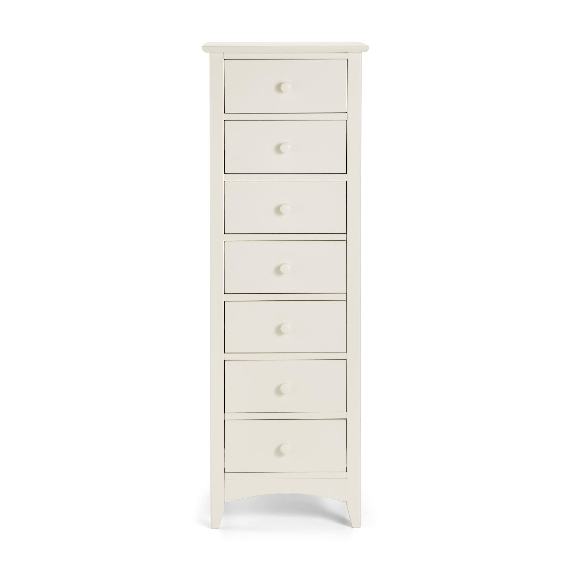 Cameo is a beautiful stone white lacquered bedroom range. Its timeless shaker design is the perfect accompaniment to any interior style and is perfect for grown-up bedrooms and children’s bedrooms alike. Solid pine frames ensure a sturdy and durable construction. The Cameo 7 drawer chest offers a great storage solution for smaller rooms given its compact footprint.