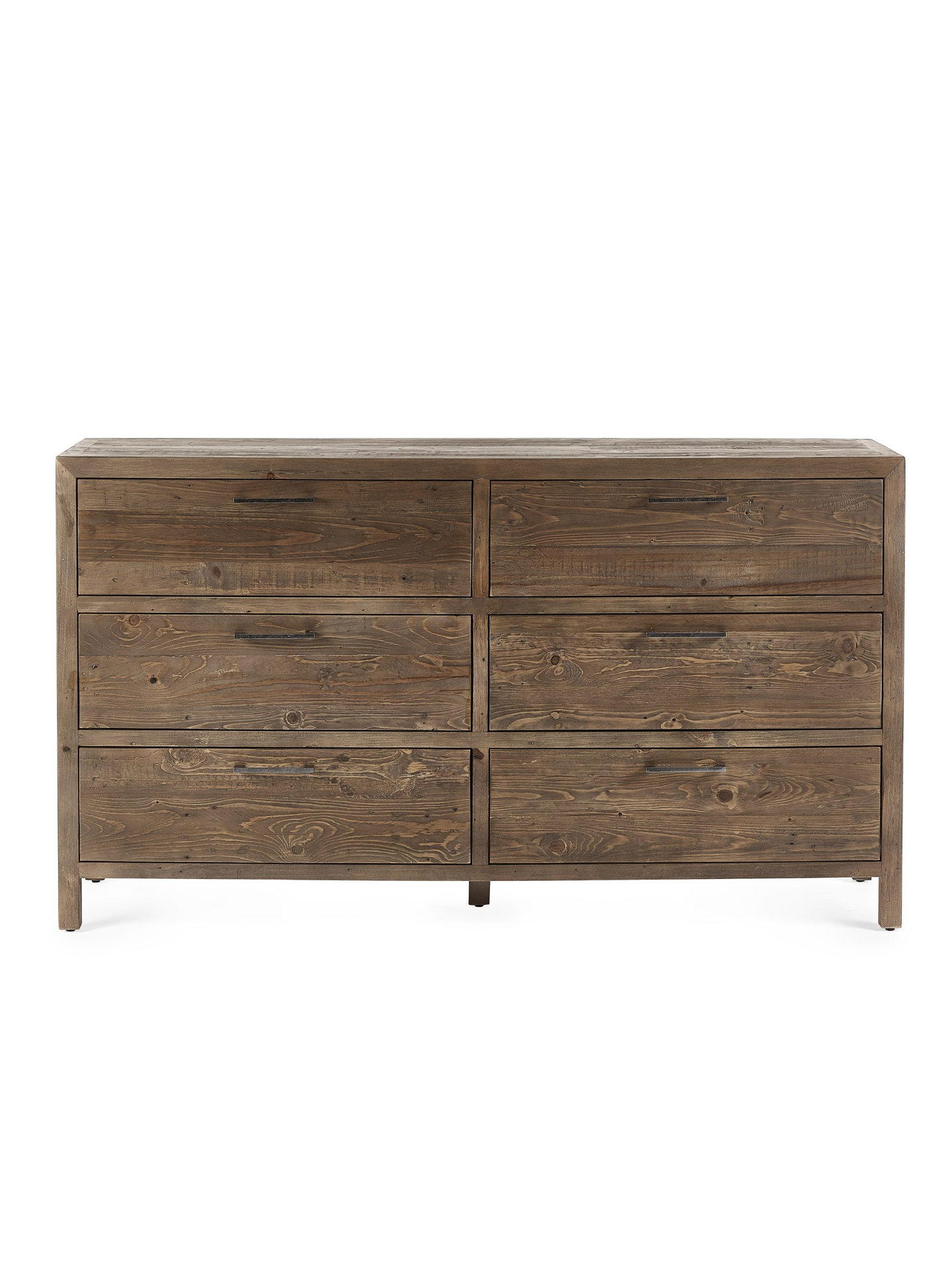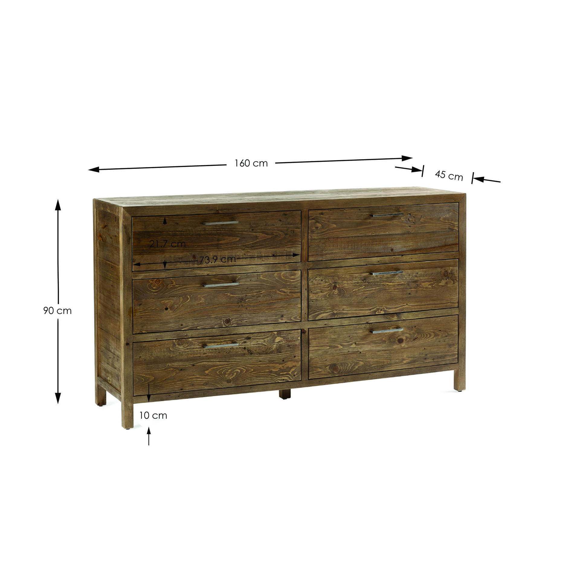Heritage is constructed using reclaimed and recycled wood – making each piece unique and distinct. The Heritage 6 Drawer Wide Chest has a distressed finish and is combined with industrial style metal handles that complete the look. The original imperfections are what make these pieces so unique and provide a distinct character in your bedroom space. With six spacious drawers, this bedside not only looks good, but provides the storage space you need. See the wide ranging Heritage Collection for the perfect matching pieces.