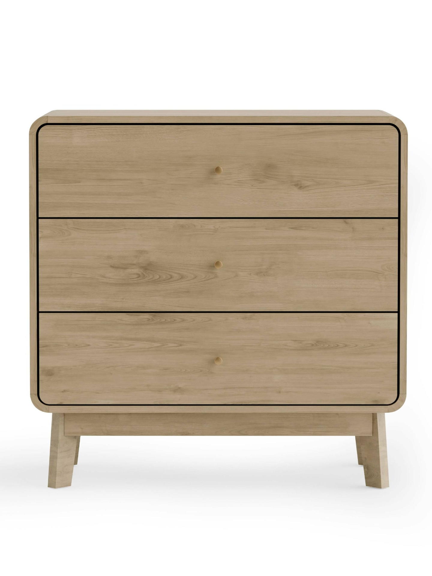 The Ingrid 3 Drawer Chest effortlessly combines style and functionality, bringing a sense of refined simplicity to your space. With its natural wood-effect finish, it adds a warm, organic touch, while the gently curved corners complement its sturdy design. Gold-finished handles provide a hint of luxury, and the three spacious drawers offer ample storage for clothing and essentials. This versatile chest is ideal for both small and large bedrooms, with simple assembly for your convenience.