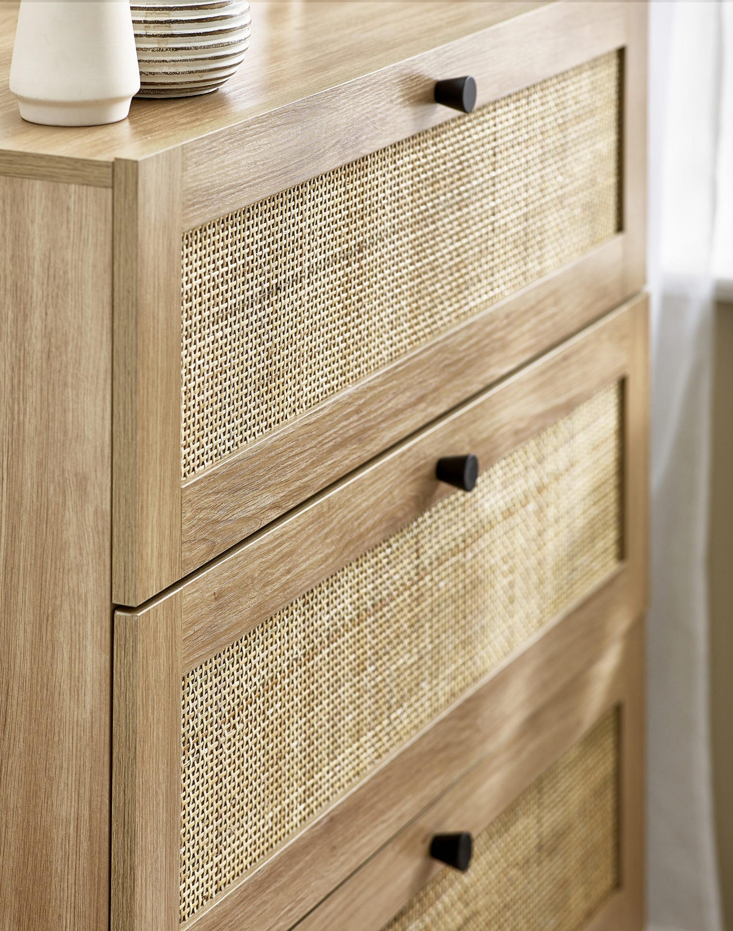 Natural rattan fronts.