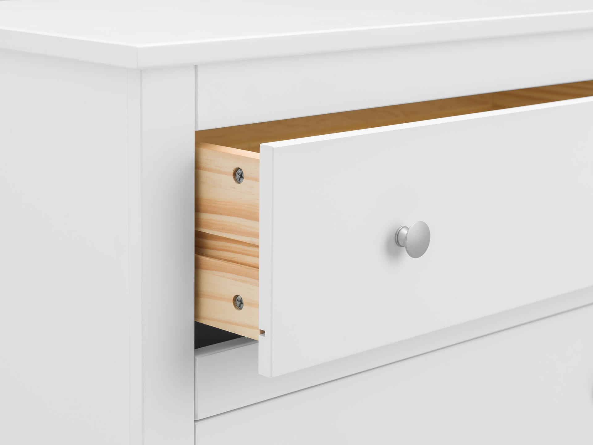 Boasting clean, simple lines the Radley 4 drawer chest is perfectly suited for both modern or traditional styles. Featuring four generously sized drawers to store away bulkier clothing. Finished in a surf white lacquer, with delicate silver handles, the Radley Bedroom Collection is perfect for adult and kids bedrooms.