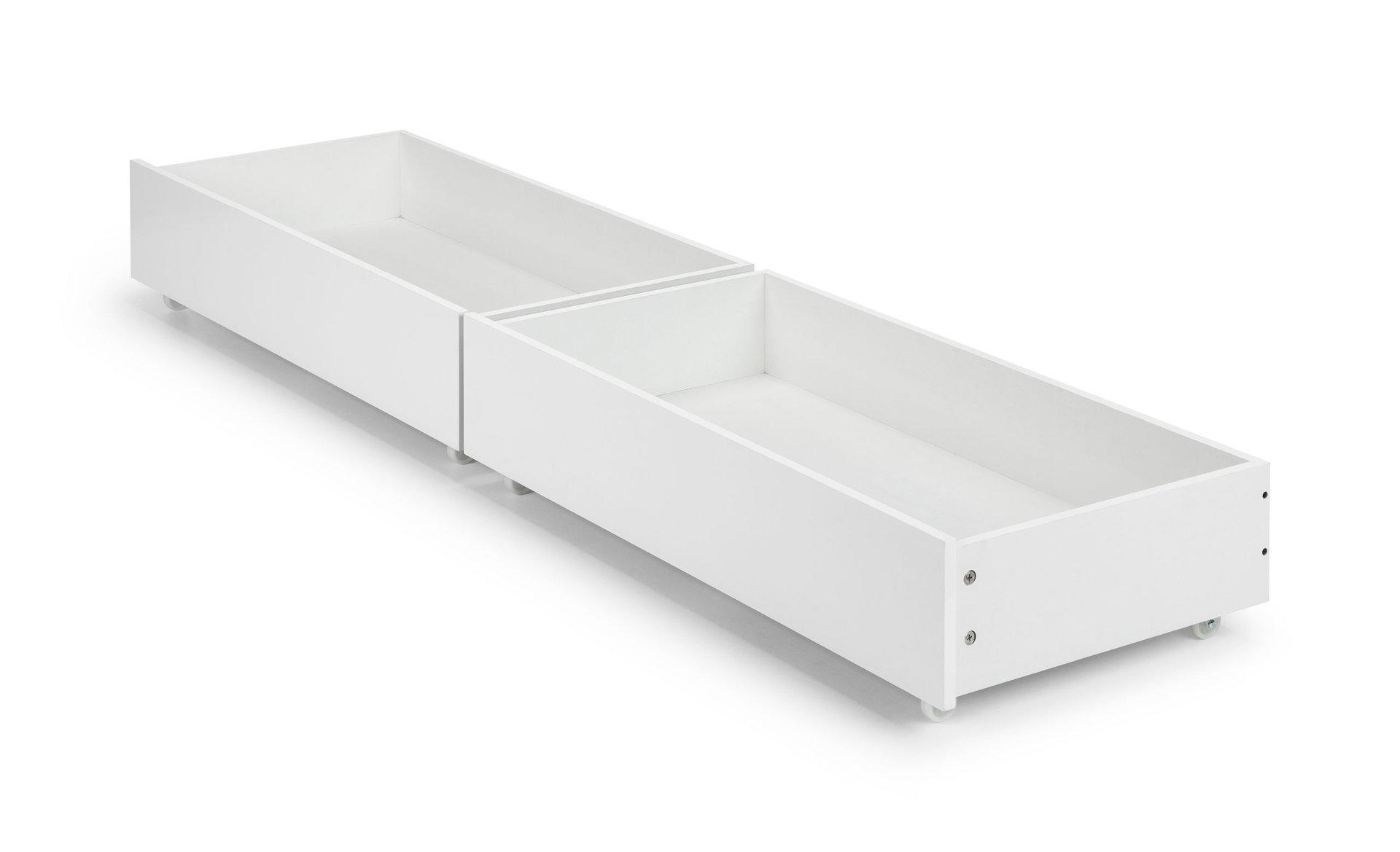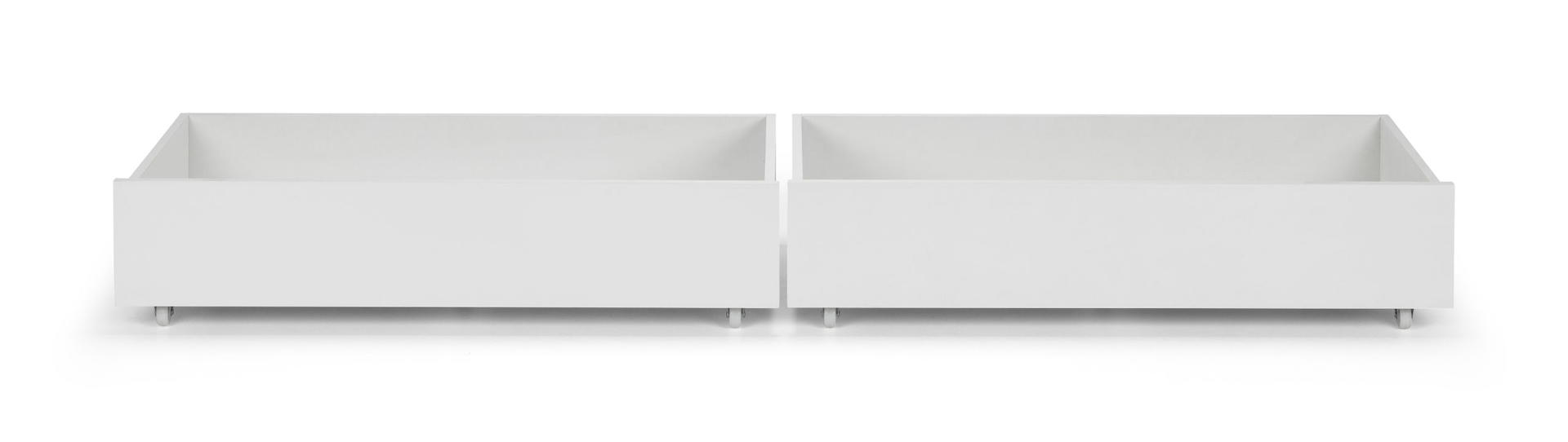 The Set of 2 Manhattan Underbed Drawers are available for extra storage for the Manhattan Bookcase Bed. Finished in a white high gloss, these drawers are on casters that can be pulled out at ease.