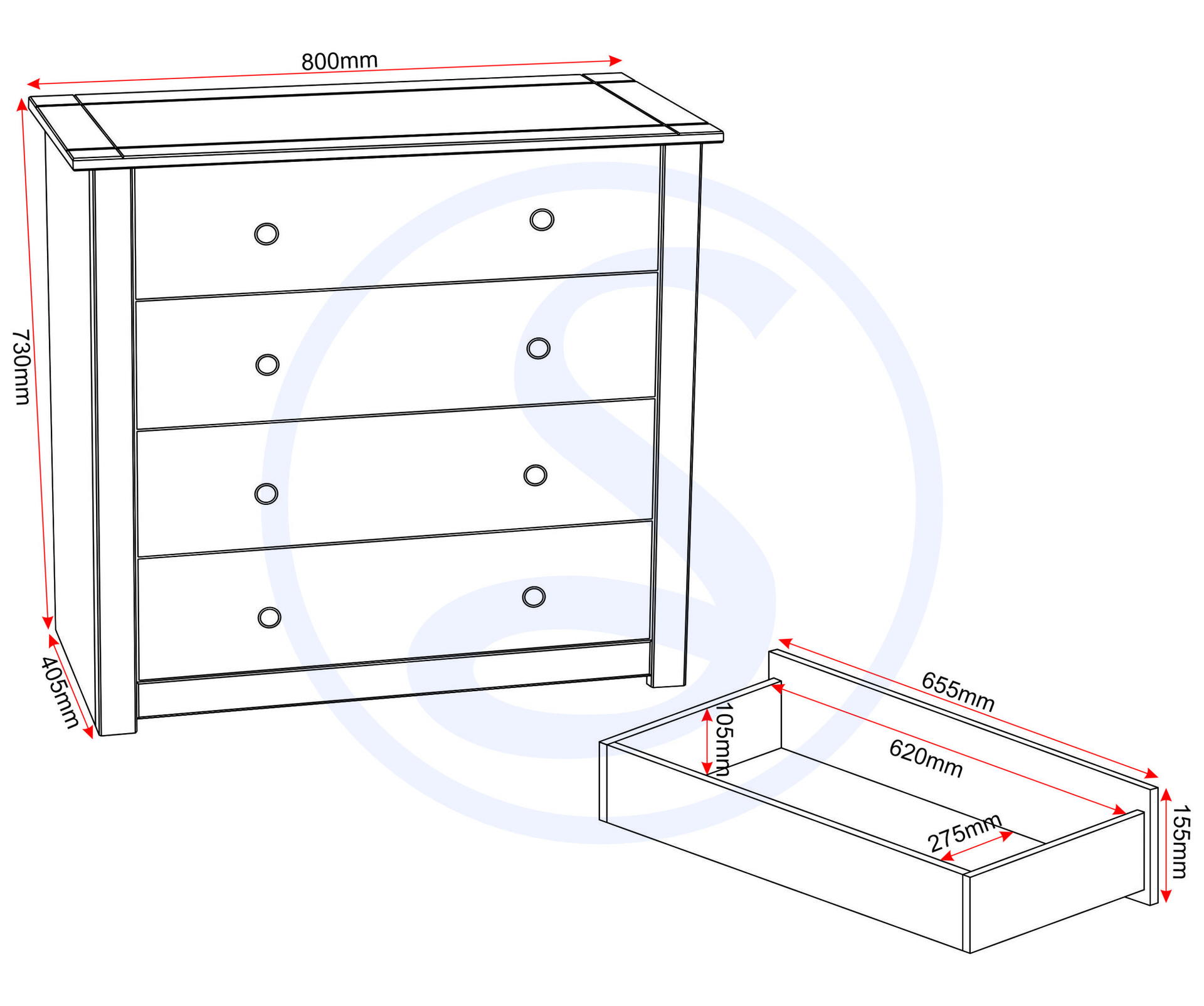 Dimensions 40510 × 80010 × 73010 cm