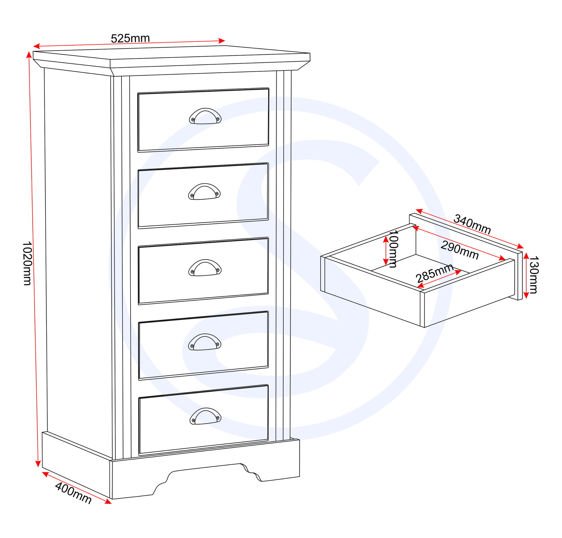 Toledo 5 Drawer Narrow Chest