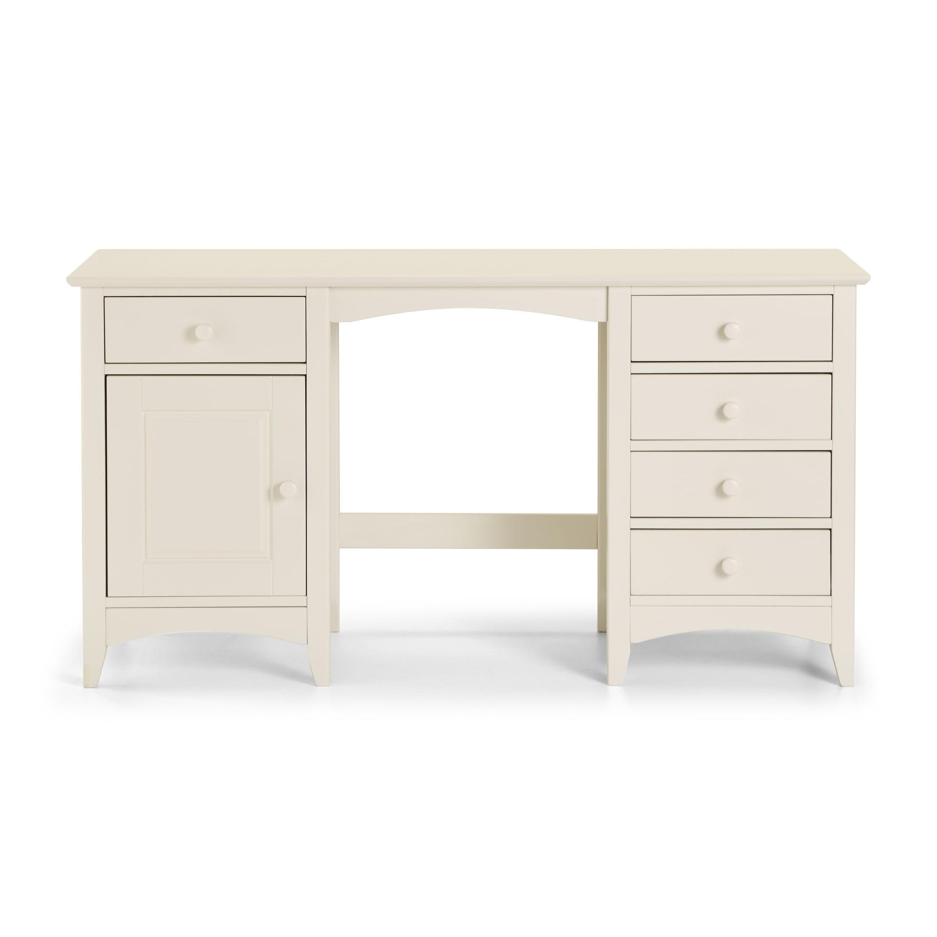 Cameo is a beautiful stone white lacquered bedroom range. Its timeless shaker design is the perfect accompaniment to any interior style and is perfect for grown-up bedrooms and children’s bedrooms alike. Solid pine frames ensure a sturdy and durable construction. The Cameo dressing table is an elegant piece with great storage, including five storage drawers and a cupboard. Accompanied by the Cameo stool and Cameo hutch top (both sold separately)