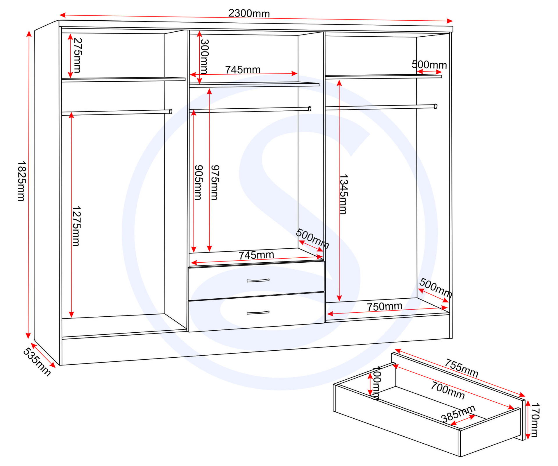 Nevada 6 Door 2 Drawer Mirrored Wardrobe
