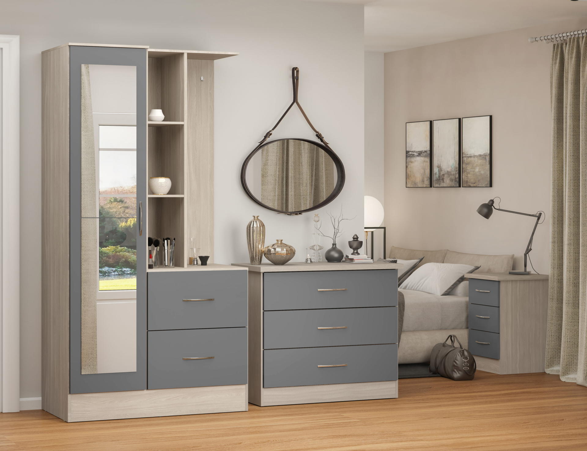 Nevada Mirrored Open Shelf Wardrobe