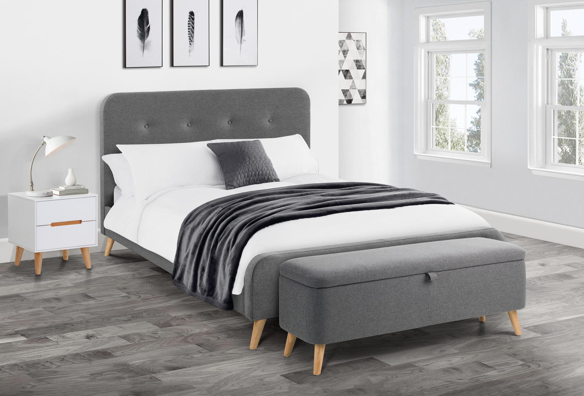The Astrid fabric bed combines classic Scandinavian design with contemporary light oak splayed legs for a timeless style. Beautifully upholstered in a crisp grey linen with a neatly buttoned headboard, Astrid’s clean lines sit well with any contemporary decor and it is the perfect accompaniment to Julian Bowen’s stylish Alicia range of bedroom furniture range. The robust construction incorporates a sprung-slatted base to ensure a comfortable night’s sleep and prolonged mattress life.