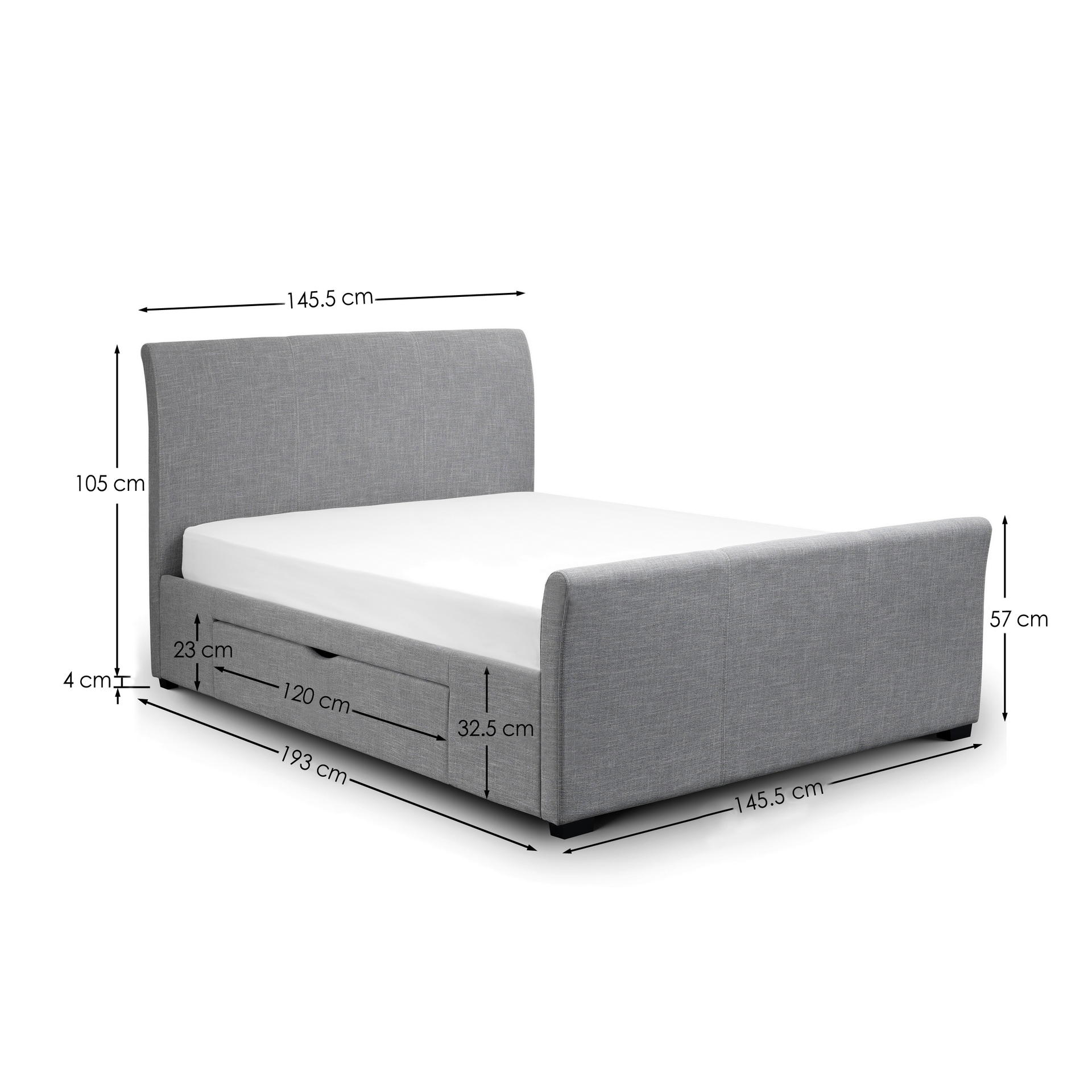 Capri is a contemporary curved design fabric bed with two large storage drawers and finished in soft light grey linen style fabric. It offers the perfect combination of style and functionality and fits beautifully with all décor styles.