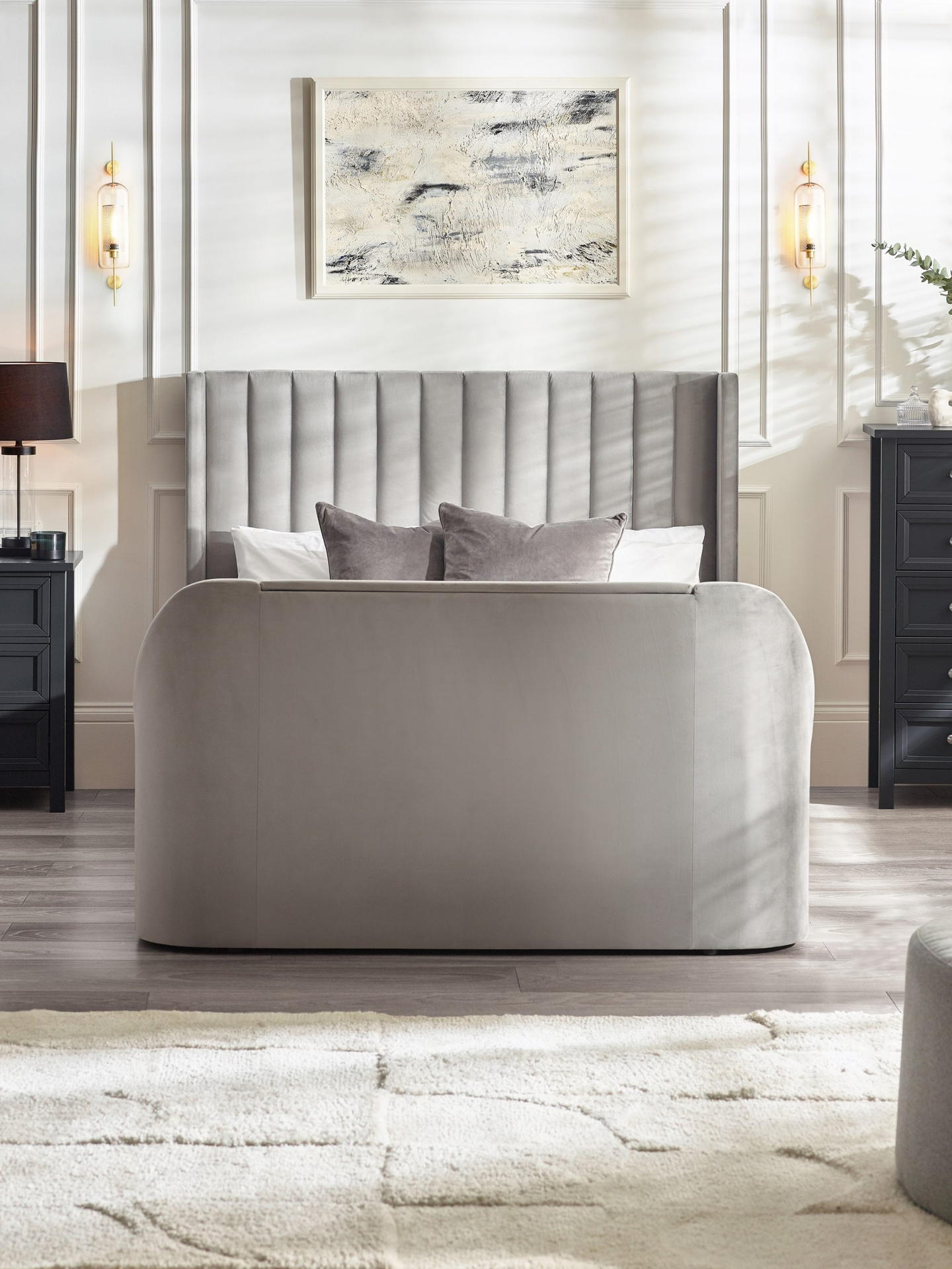 Clara Ottoman TV Bed 135cm – Light Grey