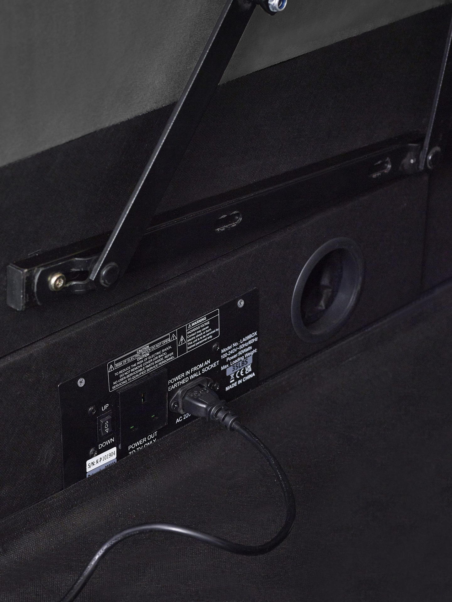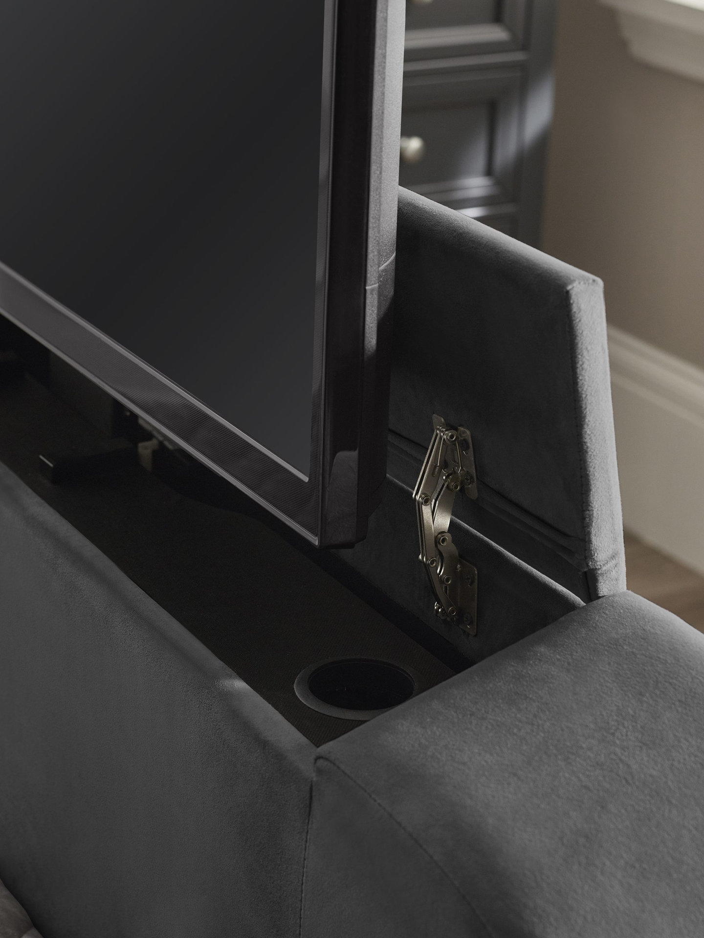 Create a perfect blend of comfort, style, and convenience with the Clara Ottoman TV Bed in dark grey. The modern upholstered frame with a sleek paneled design adds a touch of elegance to your space. The side-lift ottoman provides generous storage, including a drawer to keep your essentials organized. With the included remote control, you can effortlessly raise and lower the bed to house up to a 43-inch TV. With simple assembly, you can quickly set up this beautiful bed and enjoy a modern, functional retreat.