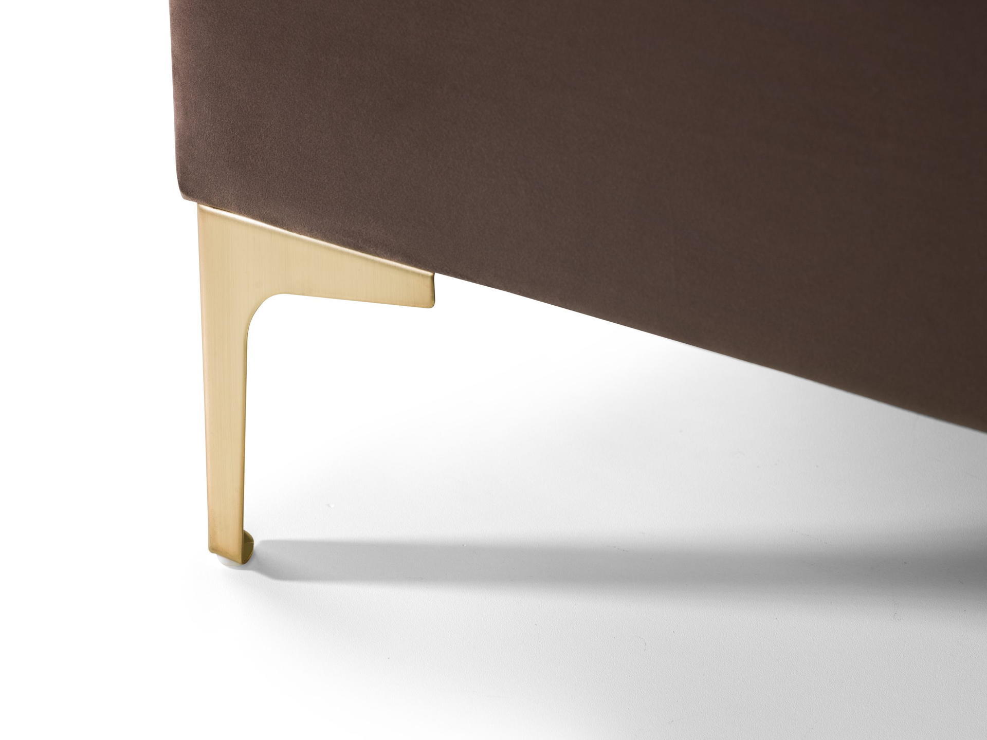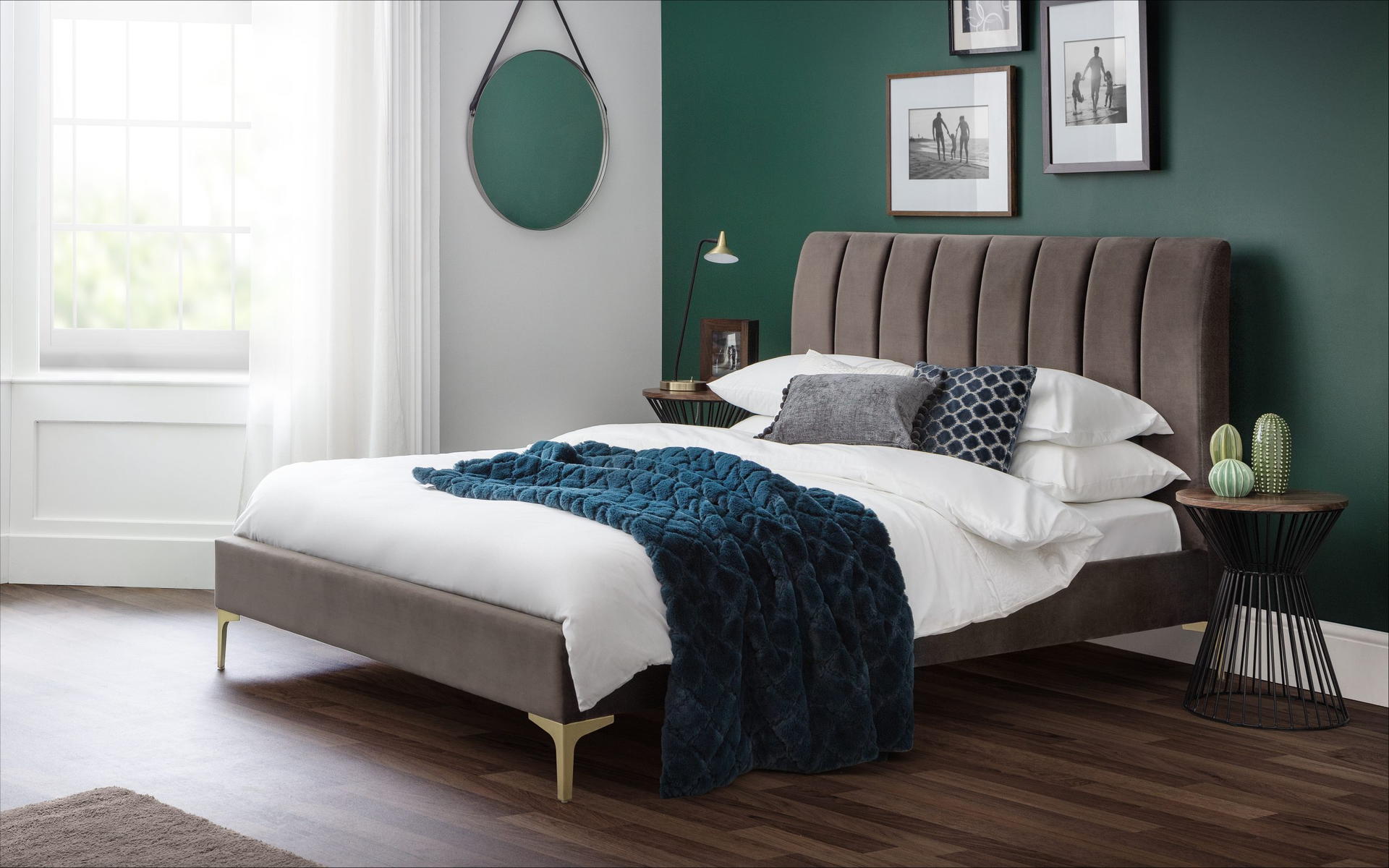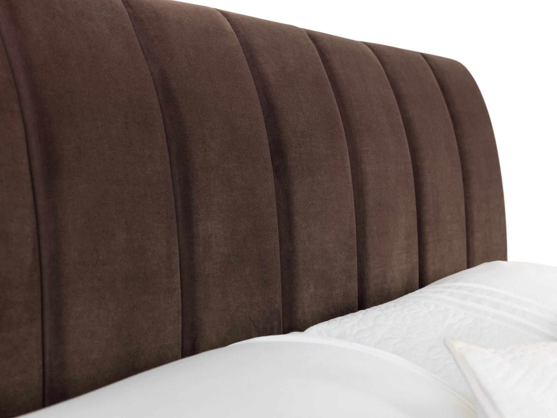 The Deco bed showcases a low profile design featuring a scalloped headboard creating a unique, timeless appeal. Upholstered in a truffle velvet fabric complimented by brushed gold metal feet, this bed excels in luxury, adding a contemporary touch to any bedroom. Available in a 135cm Double and 150cm King size.