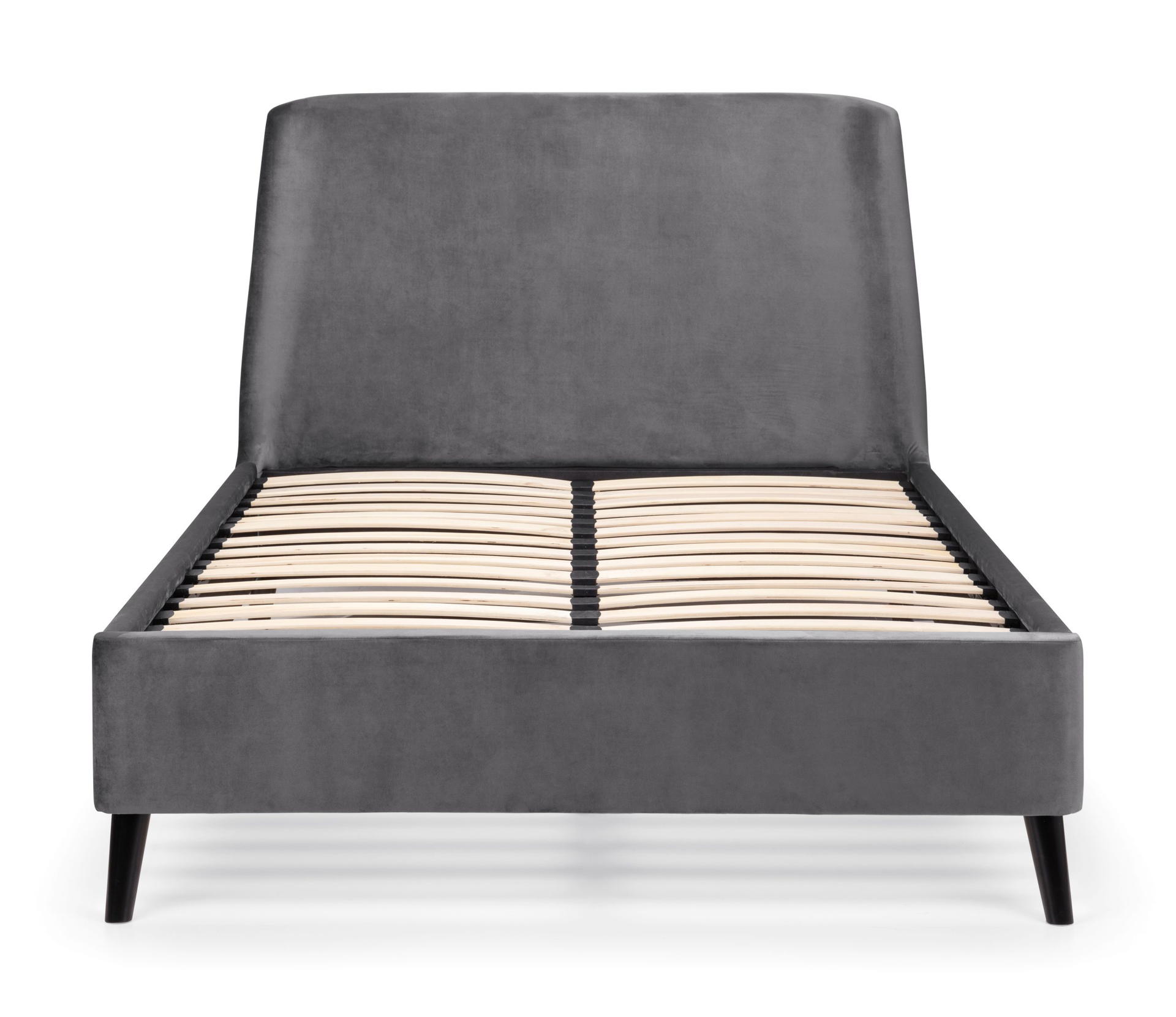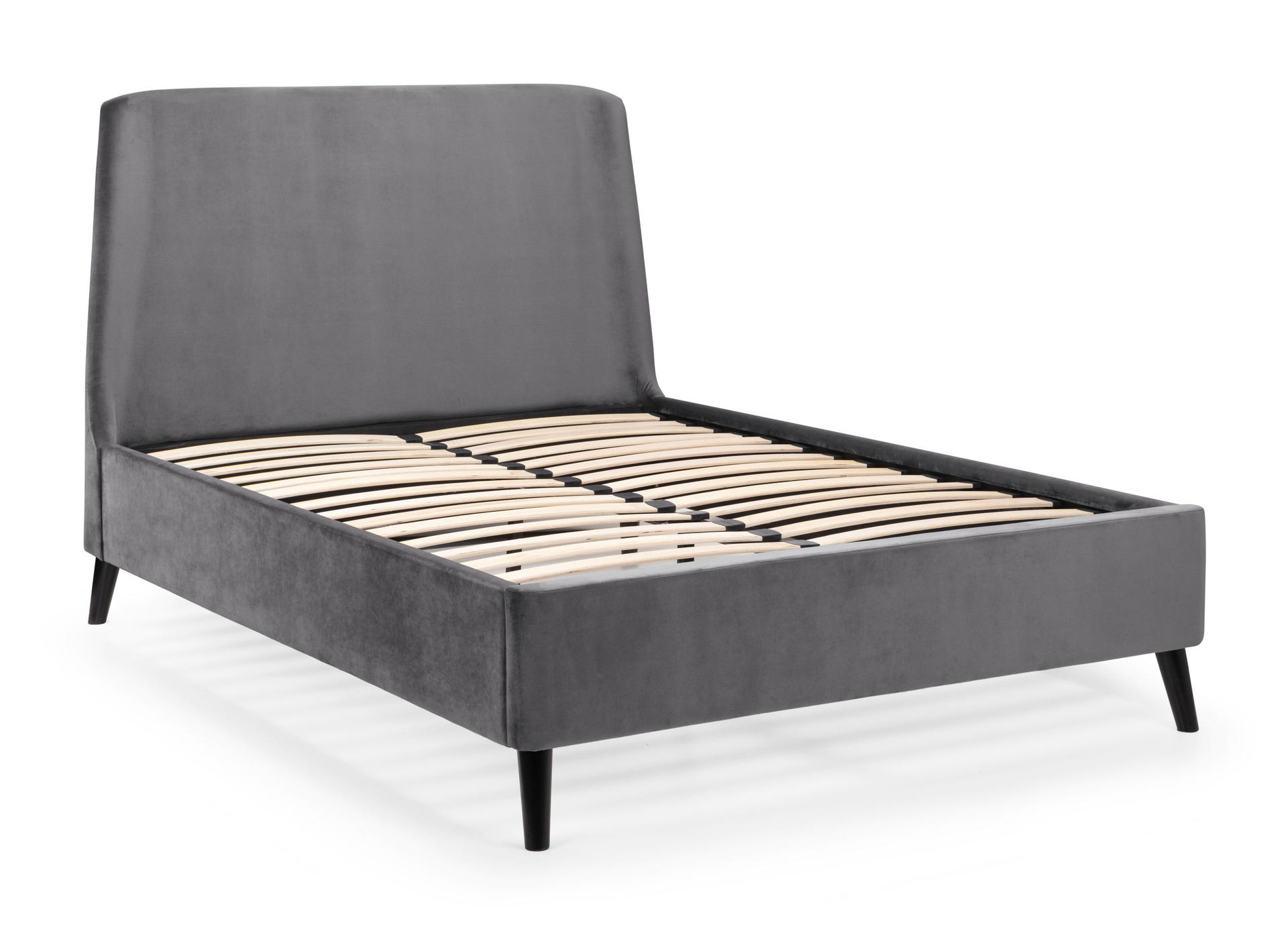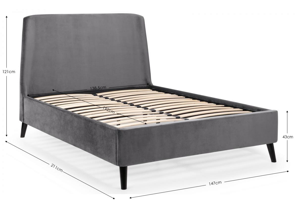Featuring a gorgeous, curved headboard, the Frida bed exudes elegance and comfort. The black contrasting legs paired with the smooth velvet gives a modern look – and is likely to be the statement piece in any bedroom. It is also available in an ottoman version, perfect for those with smaller bedroom areas as it provides that extra storage space. Available in two beautiful shades of teal and grey.
