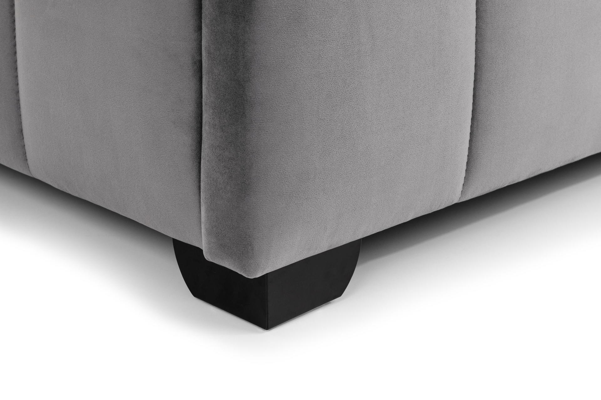 Finished in a sumptuous light grey velvet, creating a luxurious and inviting atmosphere.