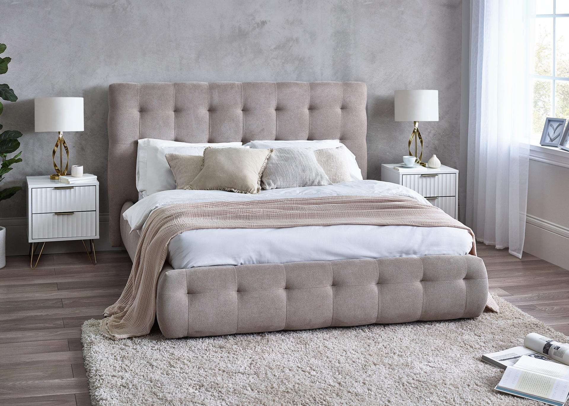 Elevate your bedroom decor with the stunning statement piece of the tufted headboard, adding a touch of timeless elegance to your bedroom decor.