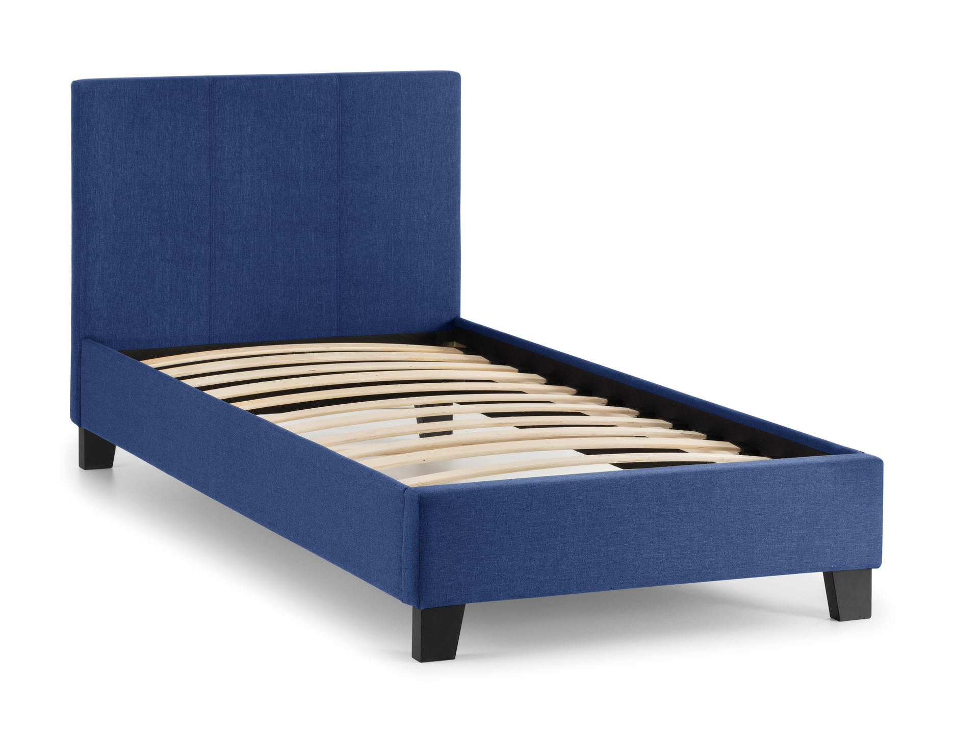 A bed with modern, clean lines, beautifully upholstered in a crisp blue linen fabric. The Rialto bed will add contemporary charm to any bedroom and is the perfect accompaniment to a wide range of bedroom styles. A sprung slatted base ensures supreme comfort and prolonged mattress life.