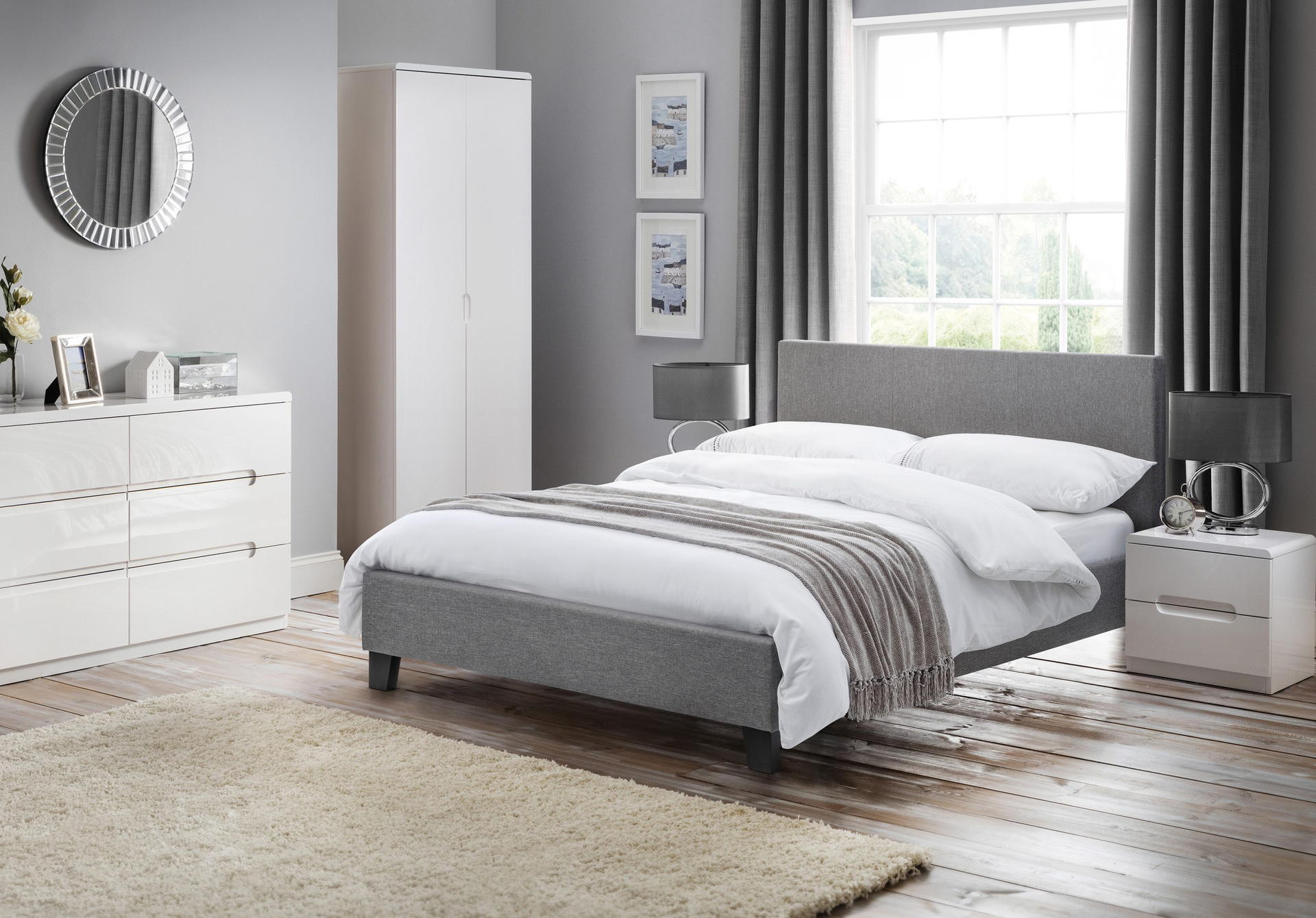 A bed with modern, clean lines, beautifully upholstered in a crisp light grey linen fabric. The Rialto bed will add contemporary charm to any bedroom and is the perfect accompaniment to a wide range of bedroom styles. A sprung slatted base ensures supreme comfort and prolonged mattress life.