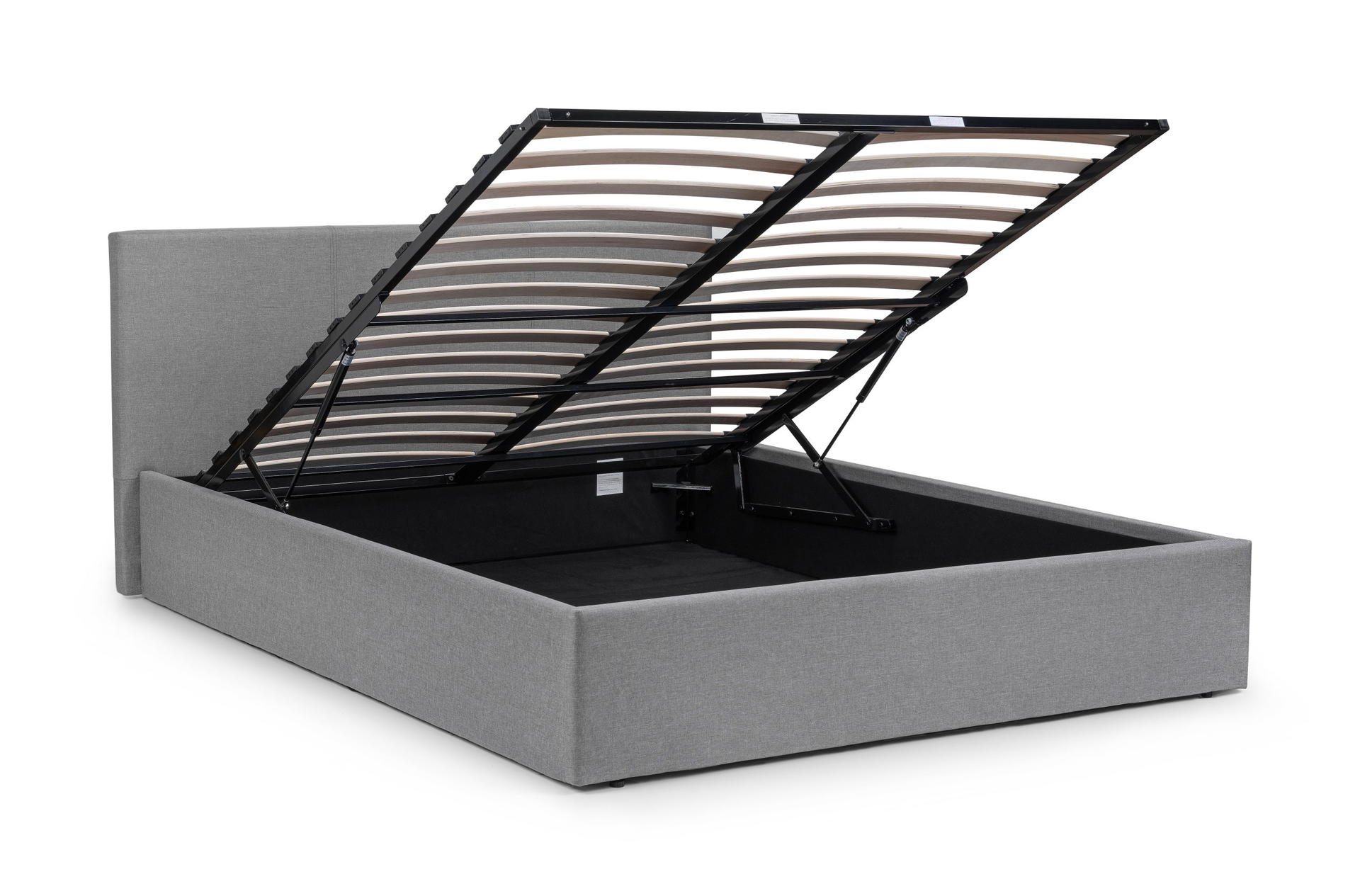 The Rialto Lift-up Storage Bed has modern, clean lines and is beautifully upholstered in a crisp light grey linen fabric. The bed has a lift-up ottoman frame that is gas powered and creates huge amounts of easily accessible storage space. The Rialto Lift-up bed will add contemporary charm to any bedroom and is the perfect accompaniment to a wide range of bedroom styles. A sprung slatted base ensures supreme comfort and prolonged mattress life.