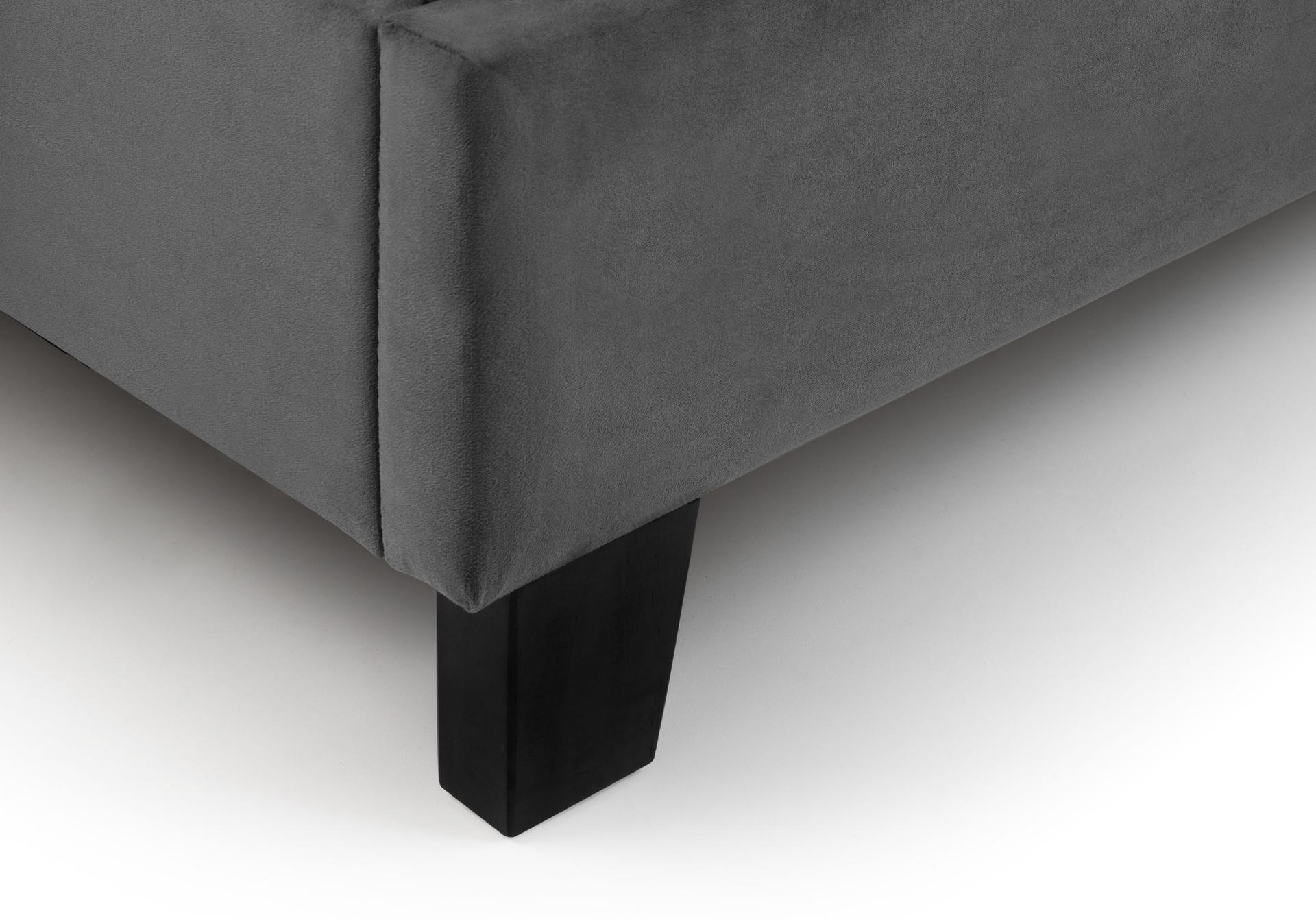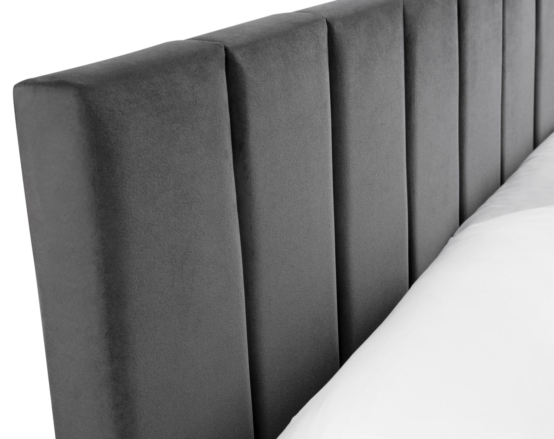 Featuring a gorgeous fluted headboard, the Rosa Velvet Bed exudes style and comfort. Finished in an attractive grey velvet with black legs makes it the perfect focal point in any bedroom.