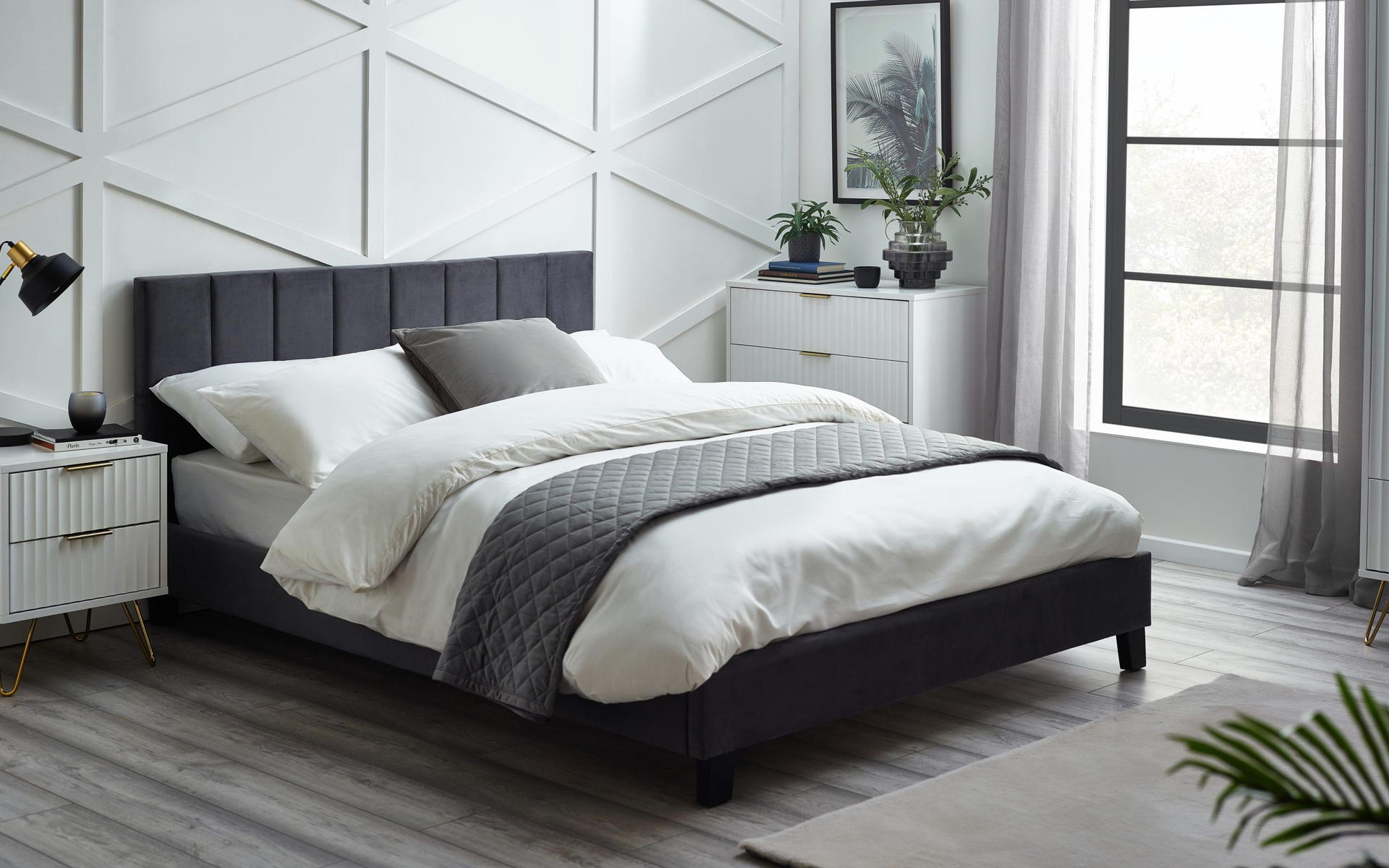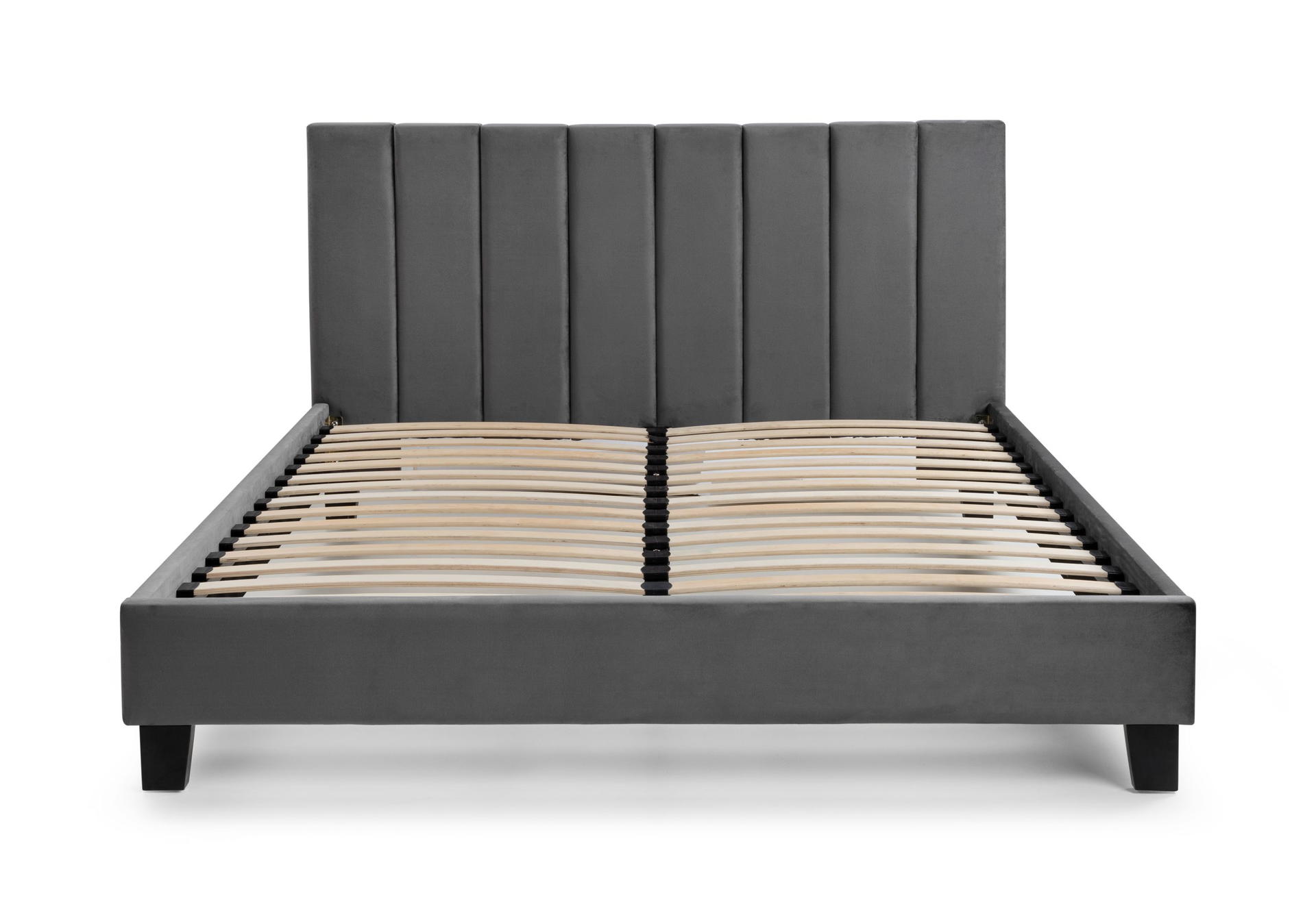 Featuring a gorgeous fluted headboard, the Rosa Velvet Bed exudes style and comfort. Finished in an attractive grey velvet with black legs makes it the perfect focal point in any bedroom.