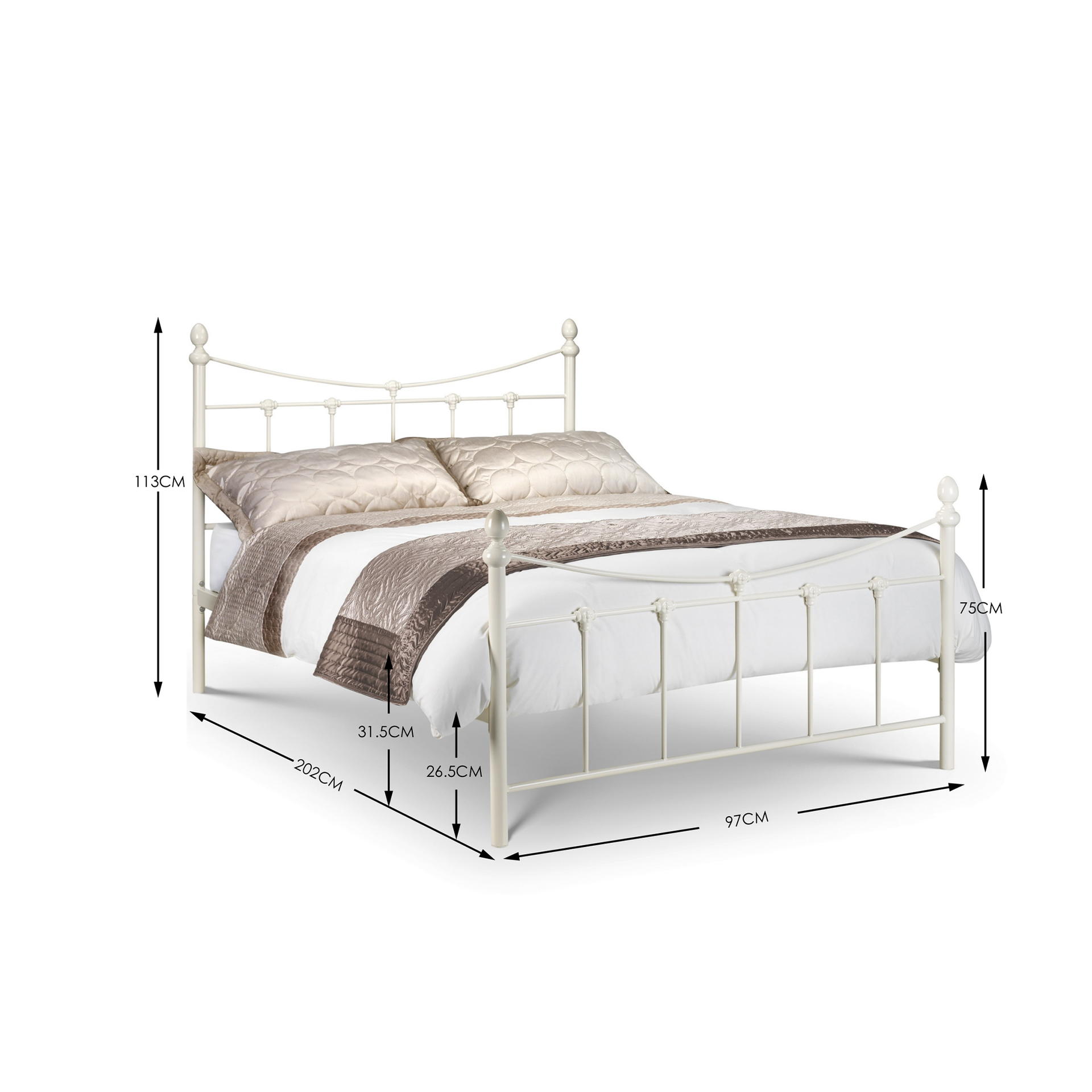 Rebecca is an elegant metal bed, beautifully finished in stone white . It is a timeless design manufactured to the highest standard which will lift any bedroom, be it of contemporary or more traditional decor. A steel frame ensures sturdiness and durability, while a sprung slatted base gives extra comfort and a longer mattress life.