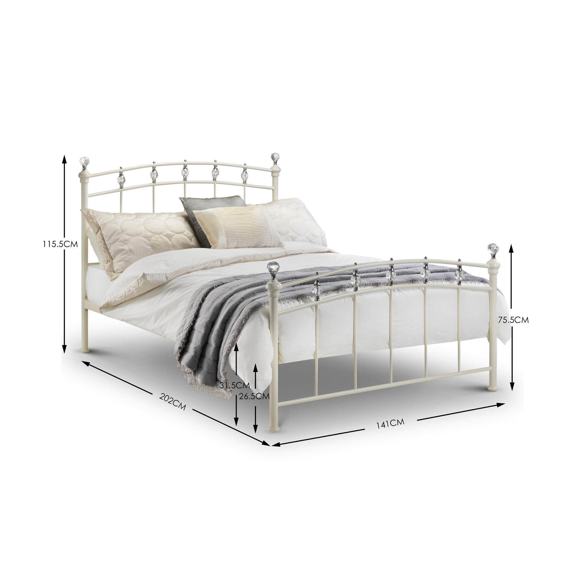 Sophie is a truly glamorous bed, exquisitely finished in stone white and featuring luxurious crystal effect finials and smart chrome detailing for a stunning overall effect. A sprung slatted base ensures extra comfort and a prolonged mattress life.