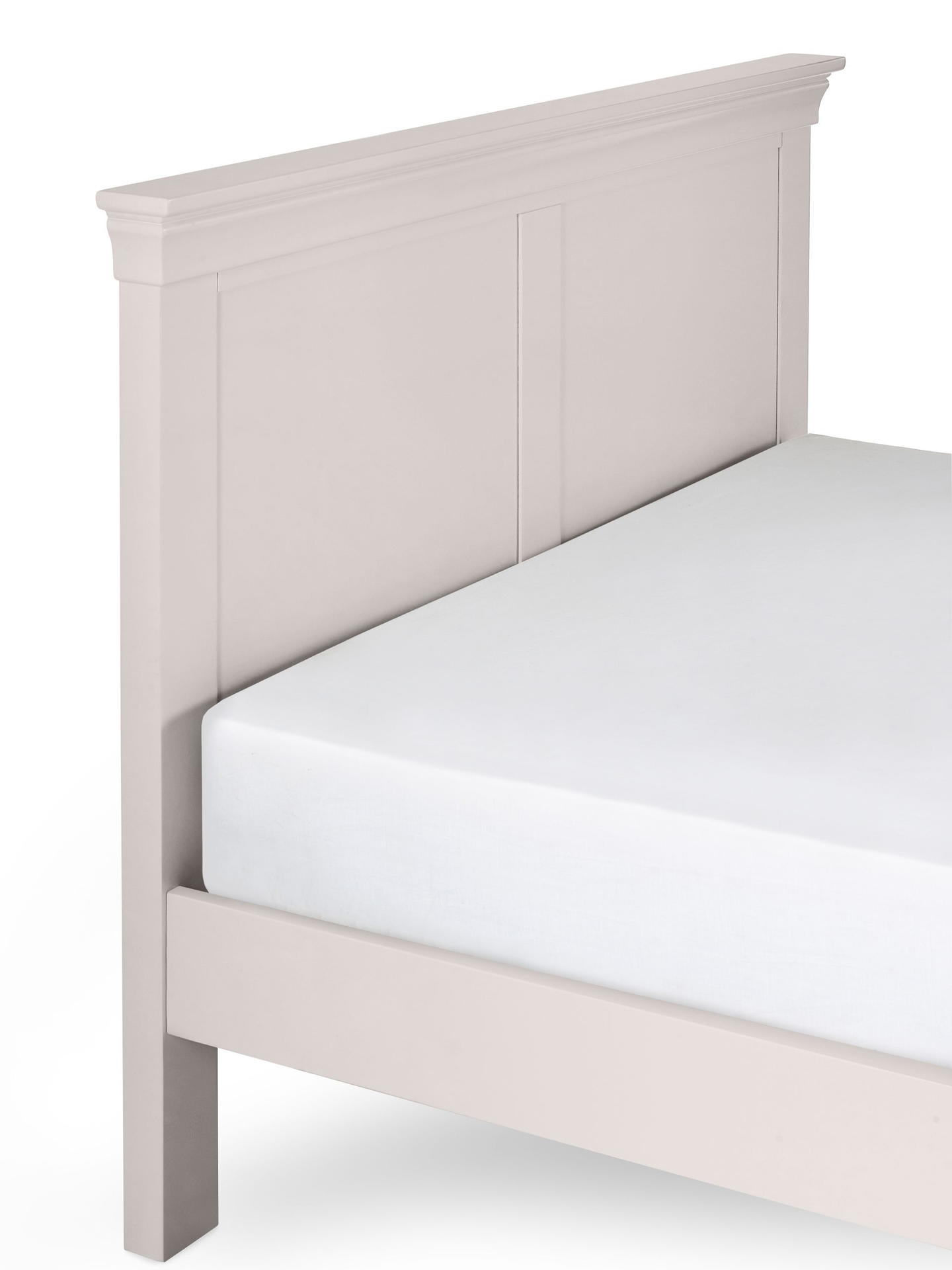 Introduce a touch of French elegance to your bedroom with the Clermont 135cm Double Bed in Light Grey. This exquisite bed combines style and durability, crafted from a blend of pine and MDF to ensure lasting quality. The soft grey finish adds a contemporary vibe, brightening any room, while the solid pine slats provide robust support for a restful night’s sleep. Thoughtful details like top-tapered cornices and a unique cut-out plinth base give this bed a refined sophistication. Its timeless design suits both modern and traditional interiors seamlessly. Mattress sold separately.