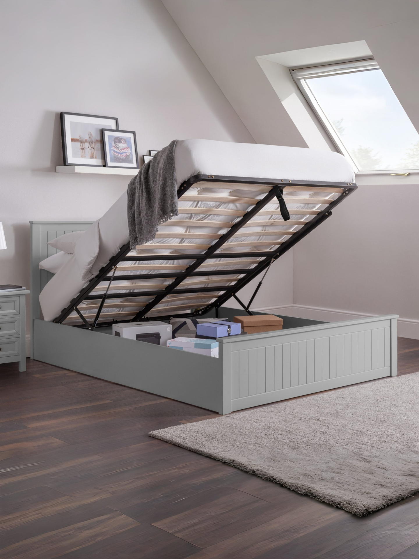 Maine Ottoman Storage 135cm Double Bed – Dove Grey