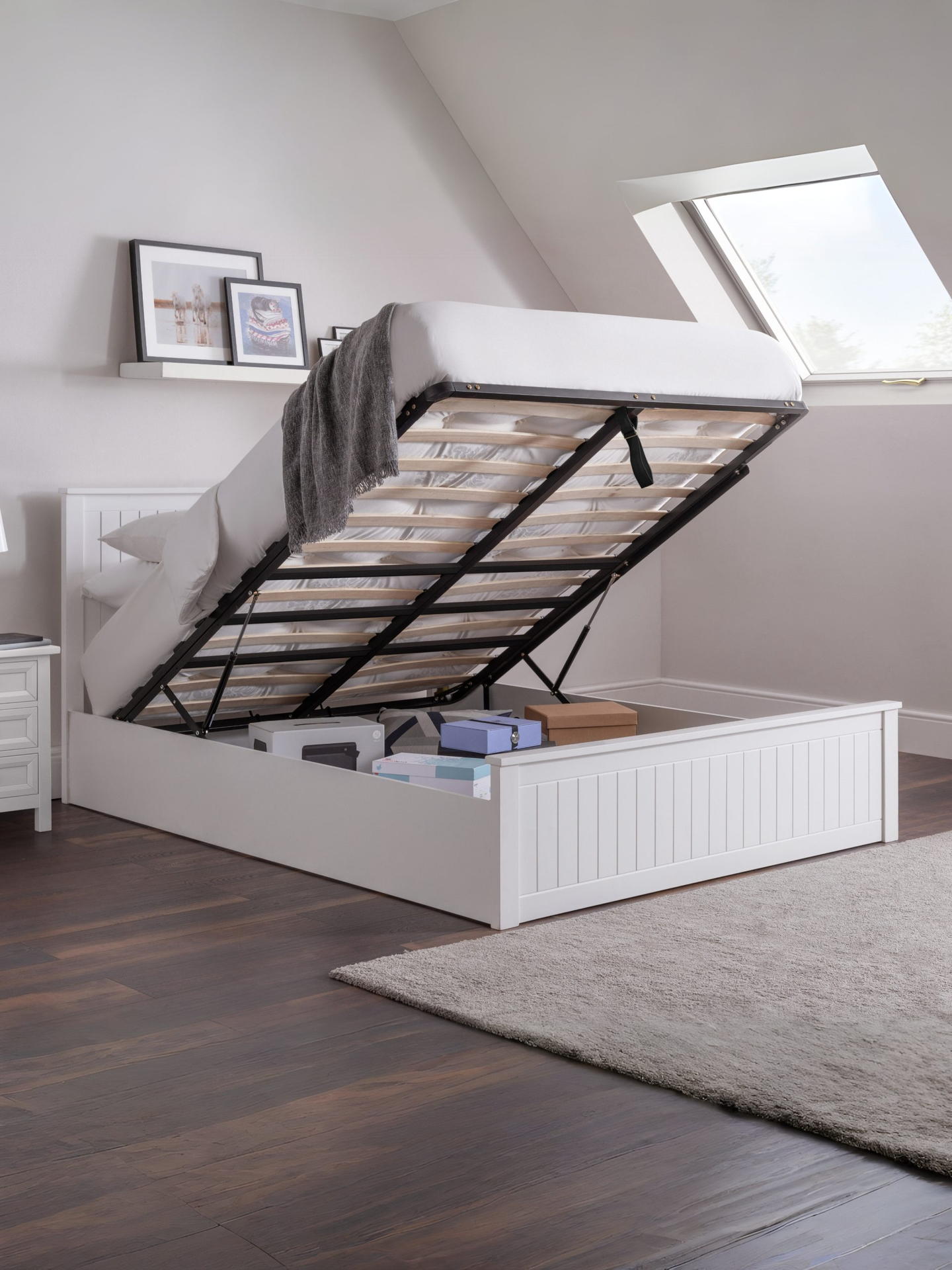 Maine Ottoman Storage 135cm Double Bed – Surf White
