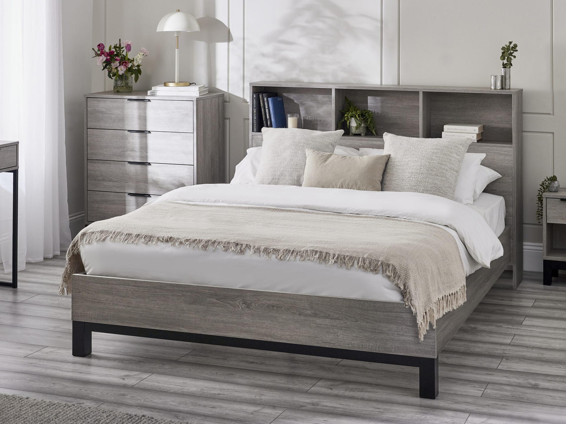 Using revolutionary click furniture technology, the Bali collection combines high quality style with simple assembly. With a modern grey oak finish and contrasting black legs and handles, the Bali collection creates a classic industrial look in your bedroom – leaving you with a high-quality interior, with low maintenance upkeep. This collection includes: 1 drawer bedside, 2 drawer bedside, 4 drawer chest, 6 drawer wide chest, dressing table/desk, wardrobe, and bookcase bed.