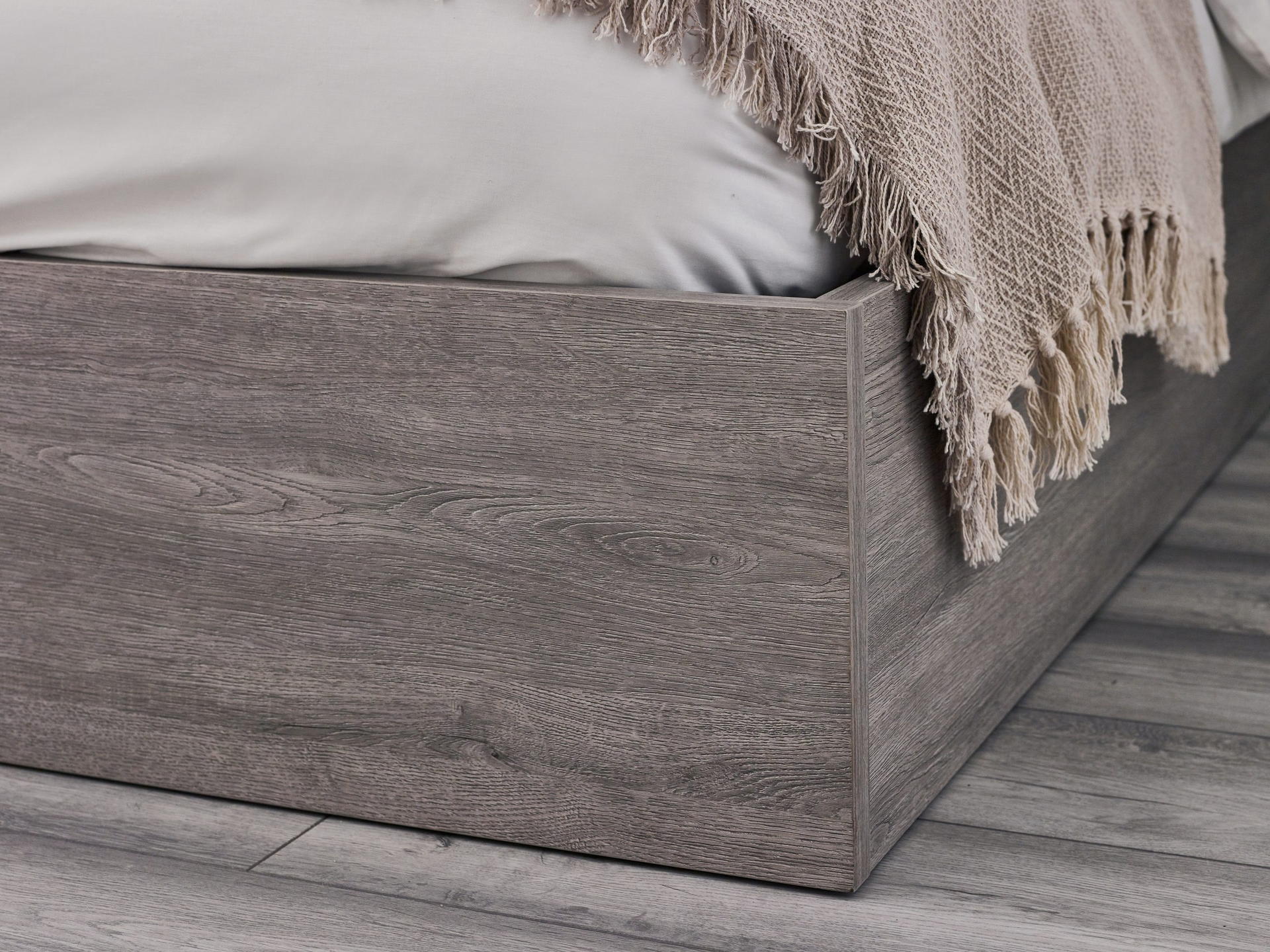 Enhance your bedroom with the Bali Ottoman Storage Bed in Grey Oak, a perfect blend of sophistication and practicality. This innovative bed offers a spacious under-bed storage solution, ideal for keeping your bedding, clothing, or other essentials neatly tucked away. The sleek design, combined with a contemporary grey oak finish, brings a touch of elegance to your space while maximising functionality. Crafted with Click Furniture Technology, it ensures effortless assembly and disassembly, making it ideal for those who value both style and convenience. Mattress sold separately.