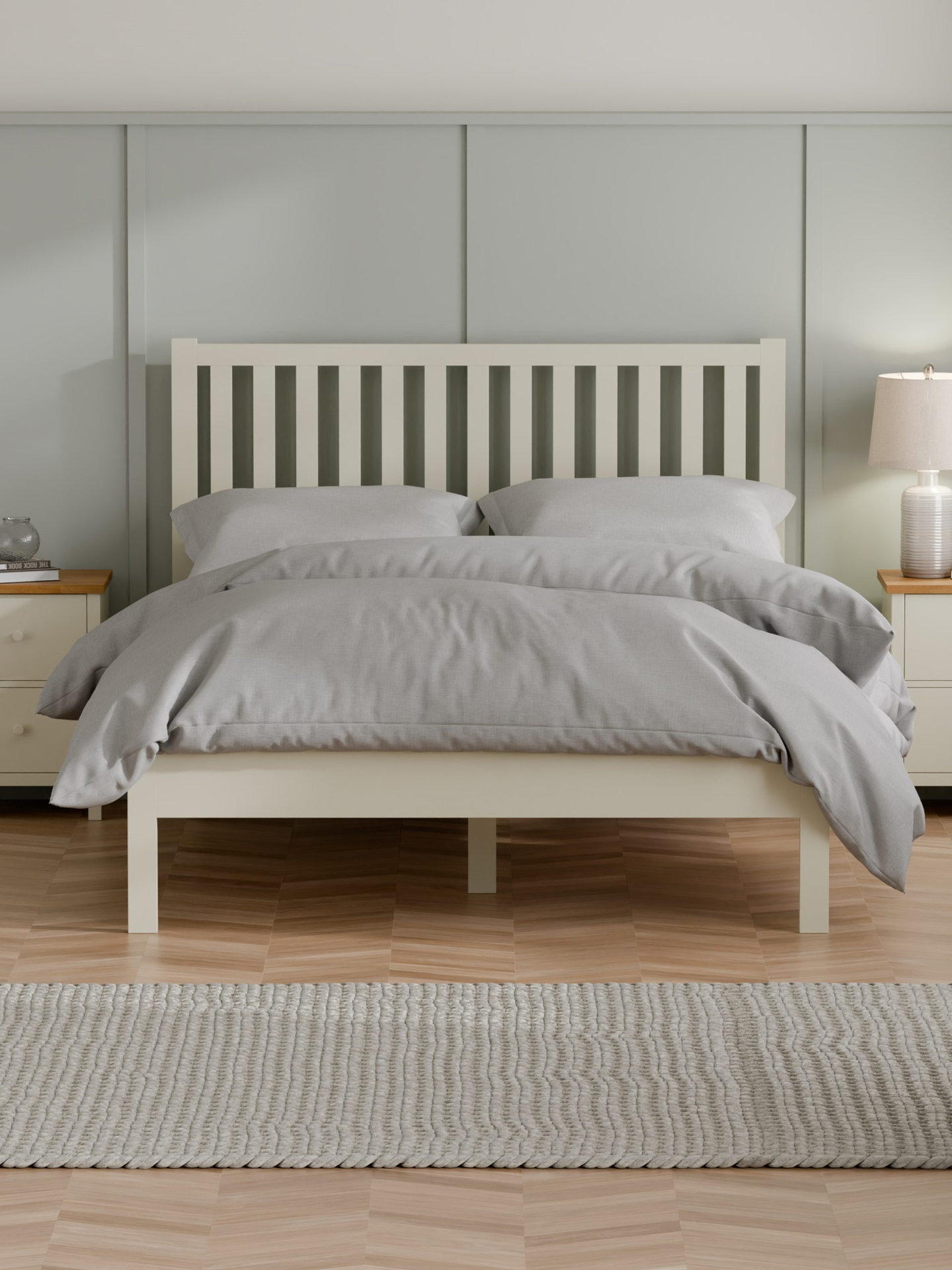 Redefine your sleep space with the Coxmoor 135cm Bed in Ivory and Oak—a perfect blend of style and comfort. Featuring a beautifully paneled headboard in a warm Ivory and Oak finish, this bed brings depth and sophistication to any room. Designed to complement both contemporary and traditional decor, its clean lines and versatile design make it a seamless addition to your home. Expertly crafted for stability and support, it ensures lasting quality and comfort. With quick and easy assembly, you’ll be enjoying restful, stylish nights in no time. Mattress sold separately.