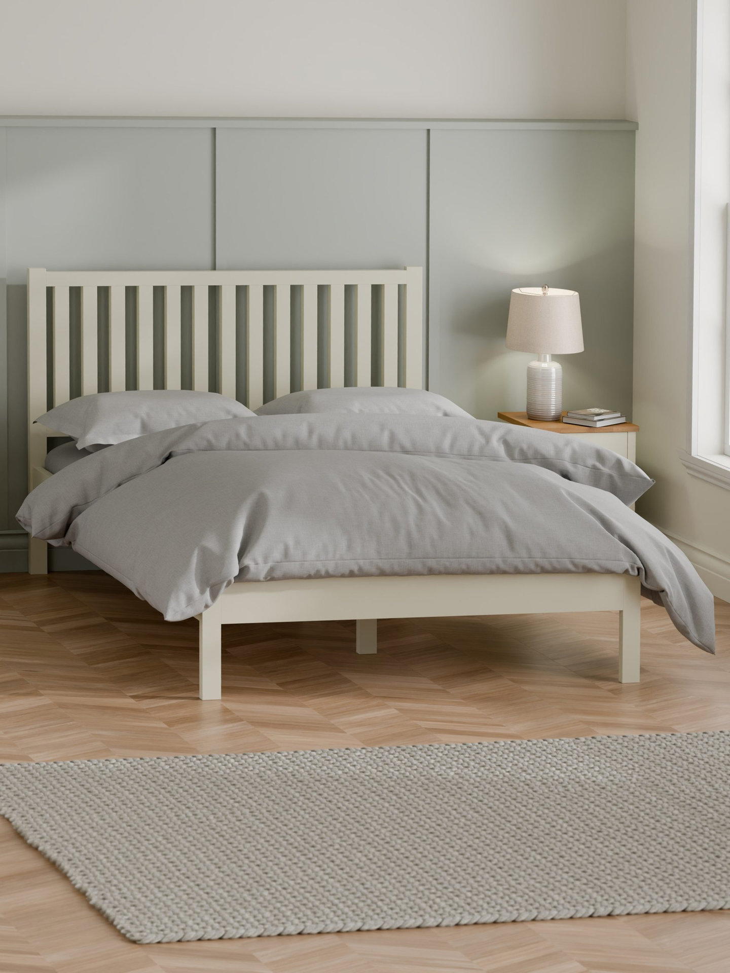 Elevate your bedroom with the Coxmoor 150cm Bed in Ivory and Oak, seamlessly blending comfort and style. Crafted from solid Ivory and Oak with a warm finish, this bed features a stunning paneled Ivory and Oak headboard that adds an element of elegance and texture to your space. Its clean, simple lines offer versatility, allowing it to harmonize beautifully with both modern and traditional decor. Designed for durability and long-lasting comfort, assembly is quick and straightforward, so you can enjoy your new bed with ease.