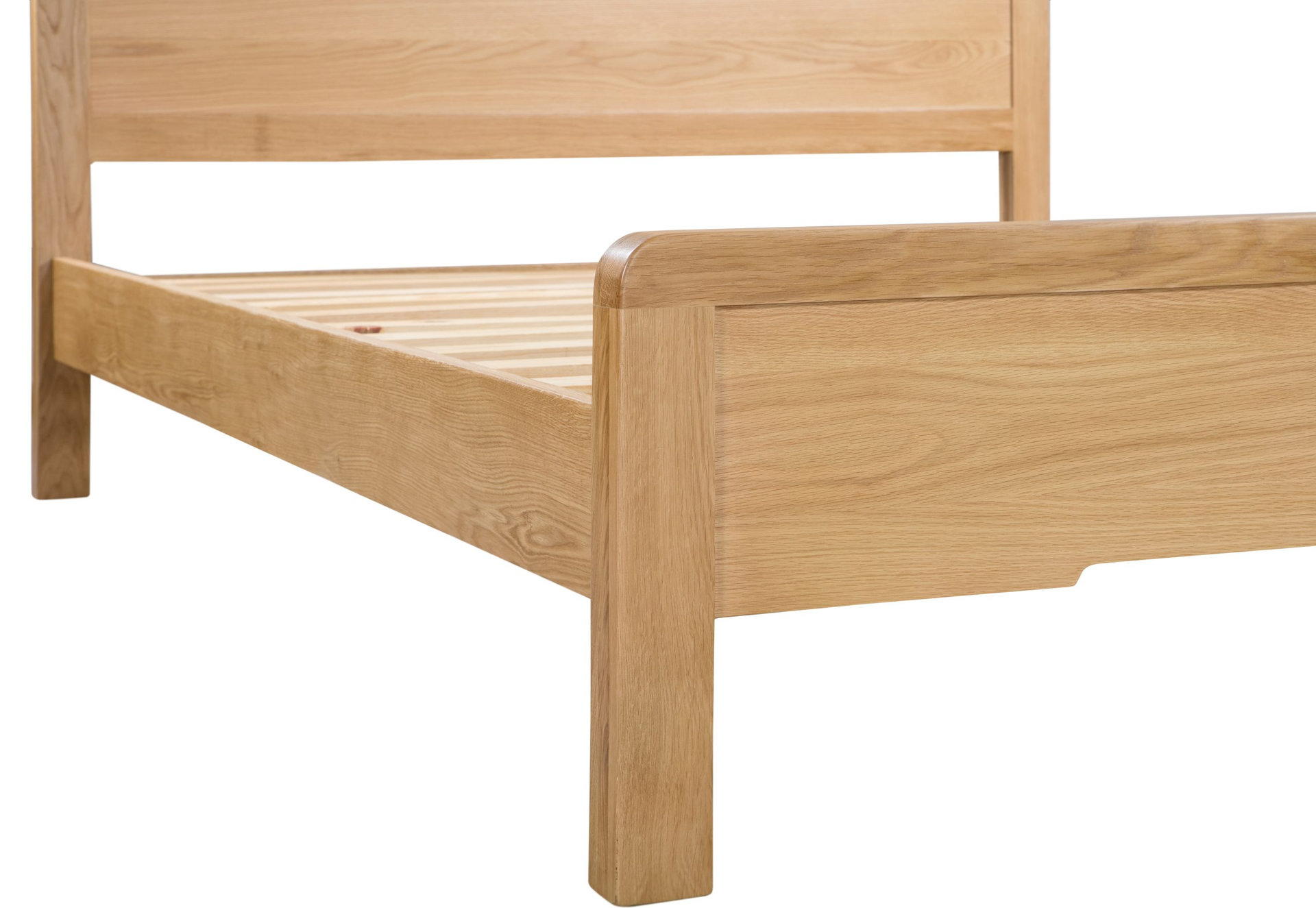 Crafted from solid white oak and oak veneers, the Curve combines clean lines with a gentle curved edging, adding a stunning touch to any bedroom. This Curve bed features a recessed handle styled headboard, to match the design of the bedroom range. With a solid wooden slatted base, to prolong mattress life, this Curve bed is available in 135cm double and 150cm king sizes. Part of the extensive Curve bedroom range from Julian Bowen