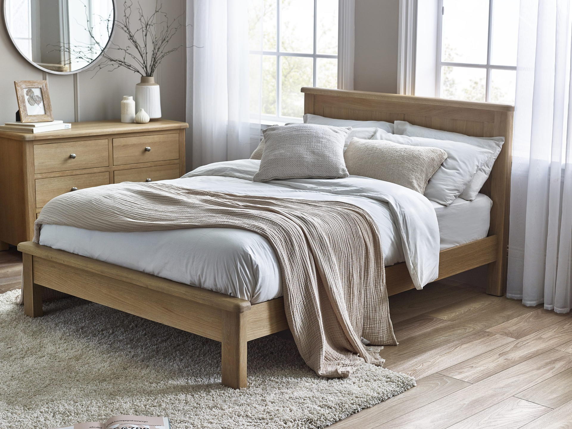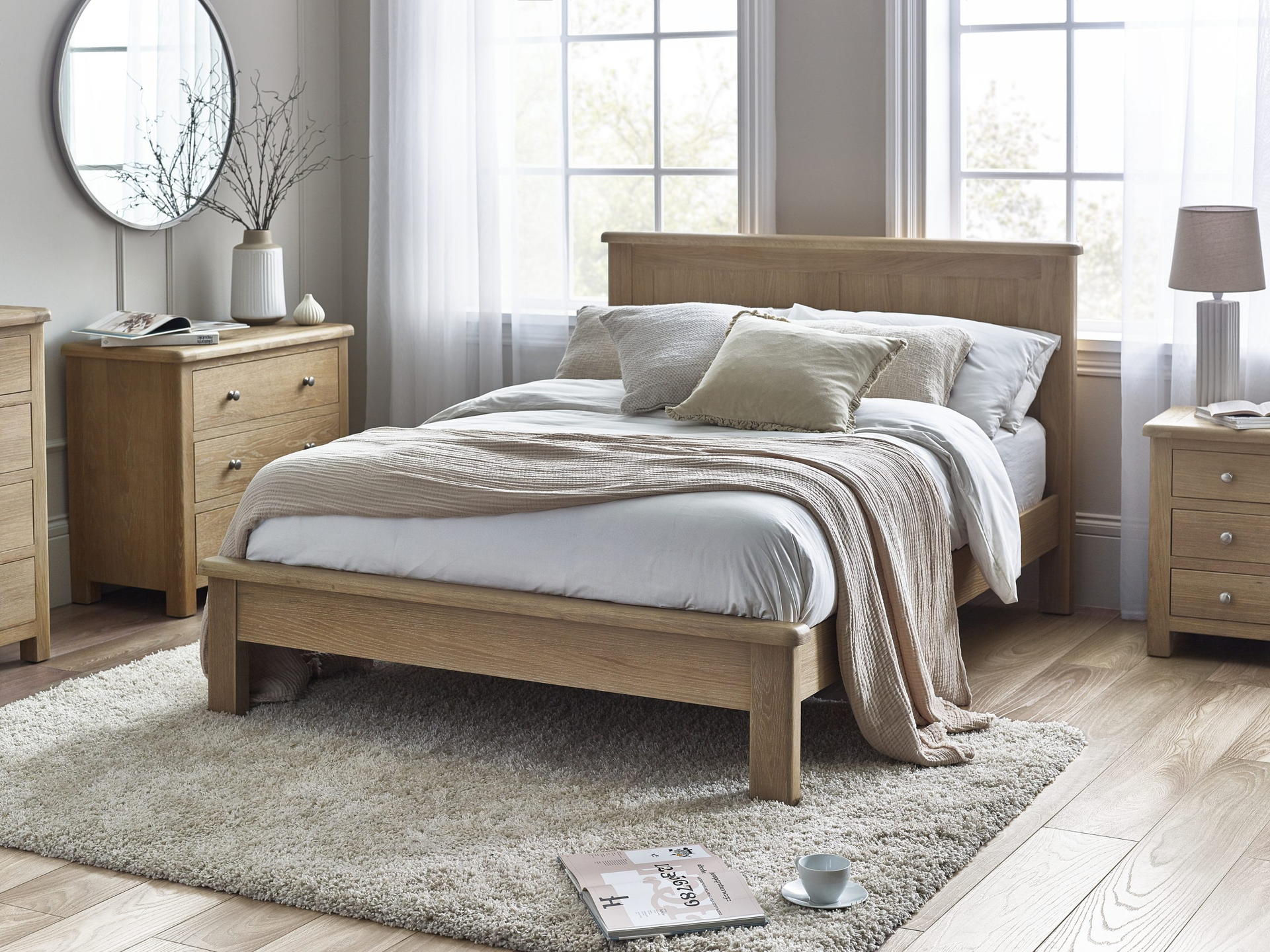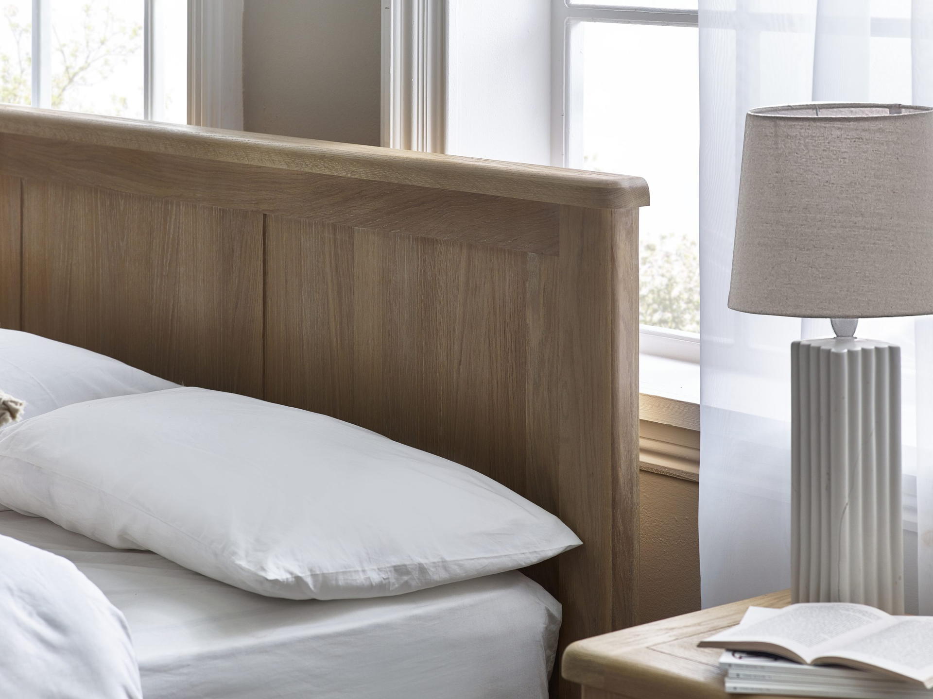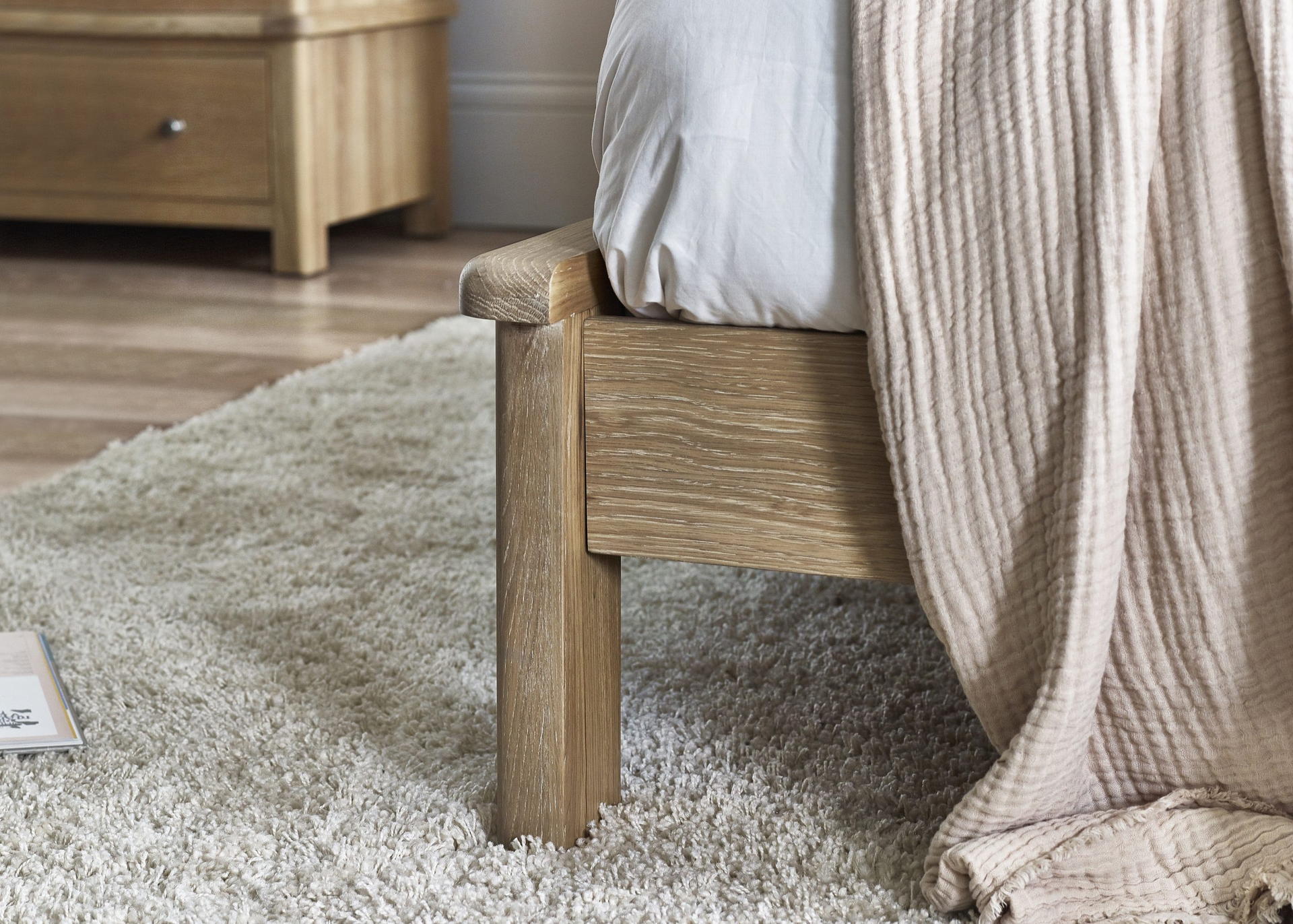 Limed Oak finish enhances the elegance of any bedroom.