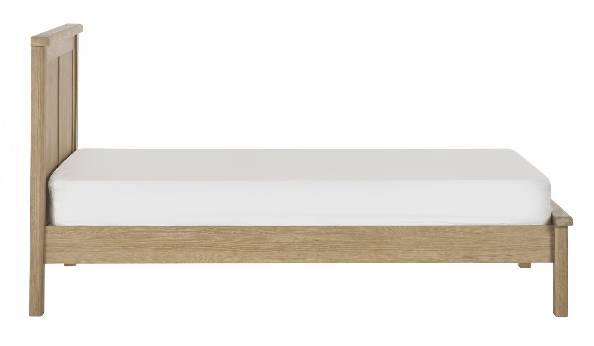 The Memphis Bed effortlessly blends style and comfort with its distinctive curved edges and paneled headboard, finished in Limed Oak, adding a touch of sophistication to any bedroom. Its wooden slatted base offers excellent support, ensuring a restful night’s sleep. Combining elegant design with practical comfort, this bed transforms your bedroom into a sanctuary of relaxation and serves as the perfect centerpiece for your space. Mattress sold separately.