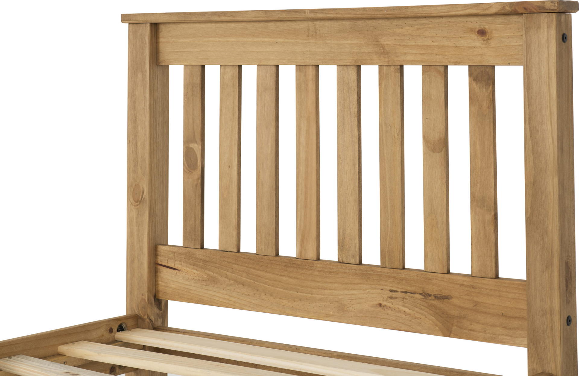 Solid wood construction waxed finish Solid slatted base- which allows air to circulate around your mattress Shaker-styled slatted headboard and high footboard. The Monaco High Foot End Bed Frame offers the best in modest yet stylish bedroom design. Utilising the functional and timeless Shaker style aesthetic allows for further emphasis to be placed on providing you supportive and comfortable place to sleep every night. This strong bed frame is effortlessly effective in terms of both style and support.