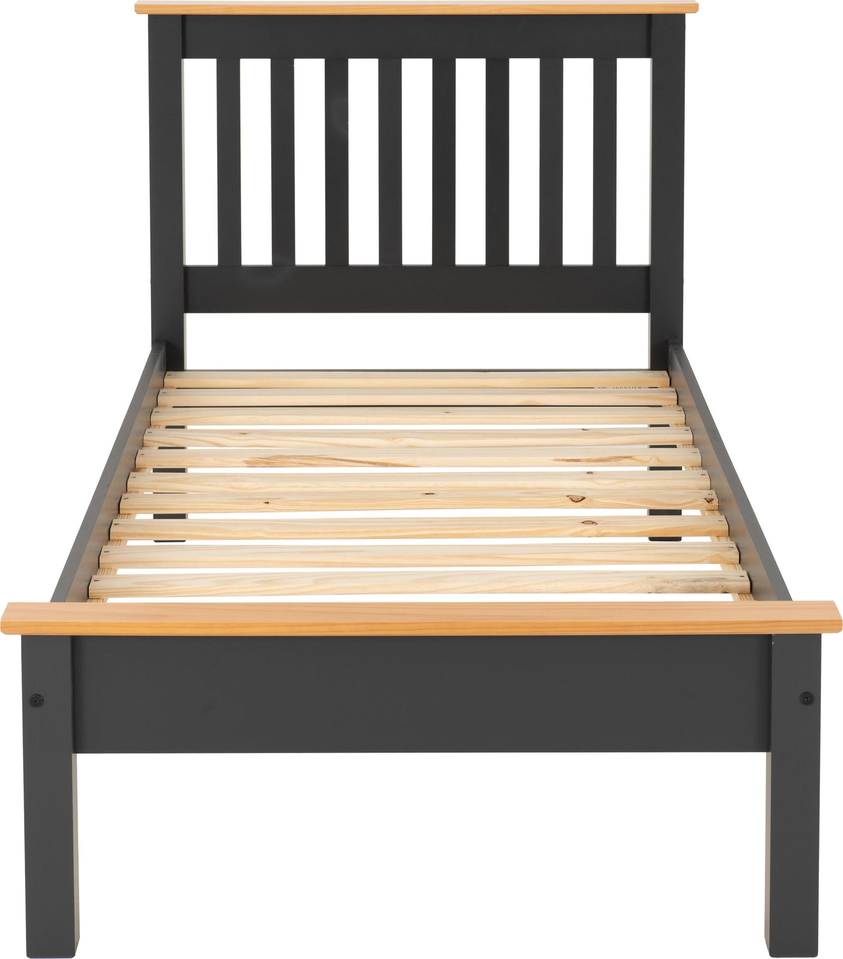 The Monaco Wooden Bed Frame beautifully shows off the natural grains of the wood. This classic shaker style bed frame is sure to add style and sophistication to any bedroom and offer a solid pine slatted base for extra comfort and support.