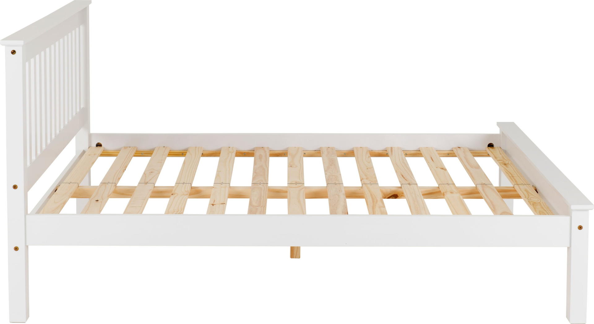 The Monaco Wooden Bed Frame beautifully shows off the natural grains of the wood. This classic shaker style bed frame is sure to add style and sophistication to any bedroom and offer a solid pine slatted base for extra comfort and support.