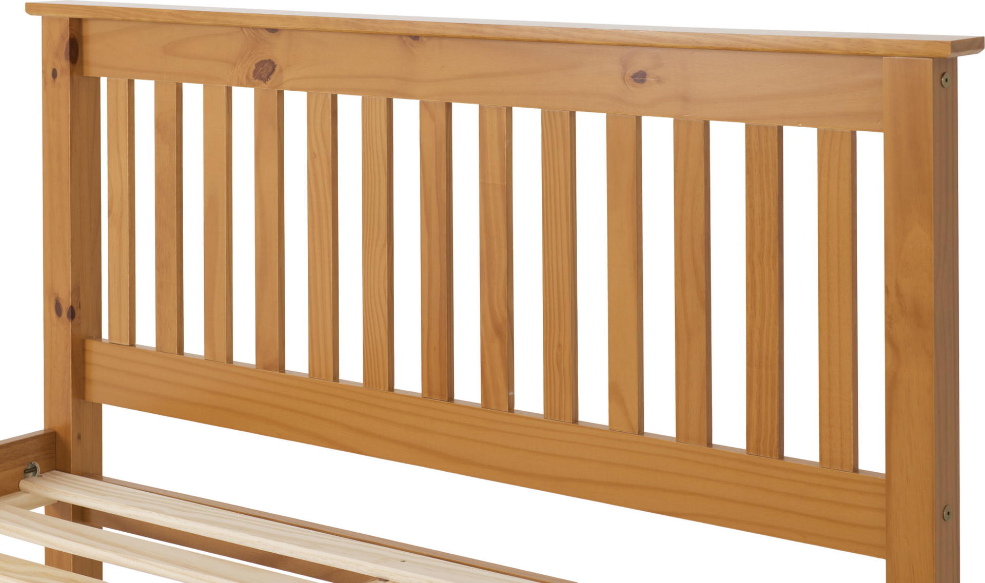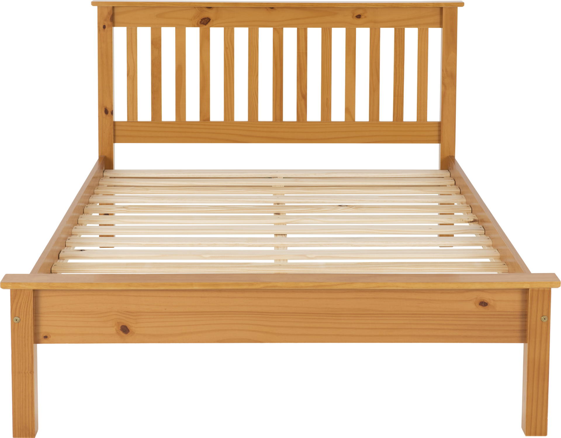 The Monaco Wooden Bed Frame beautifully shows off the natural grains of the wood. This classic shaker style bed frame is sure to add style and sophistication to any bedroom and offer a solid pine slatted base for extra comfort and support.