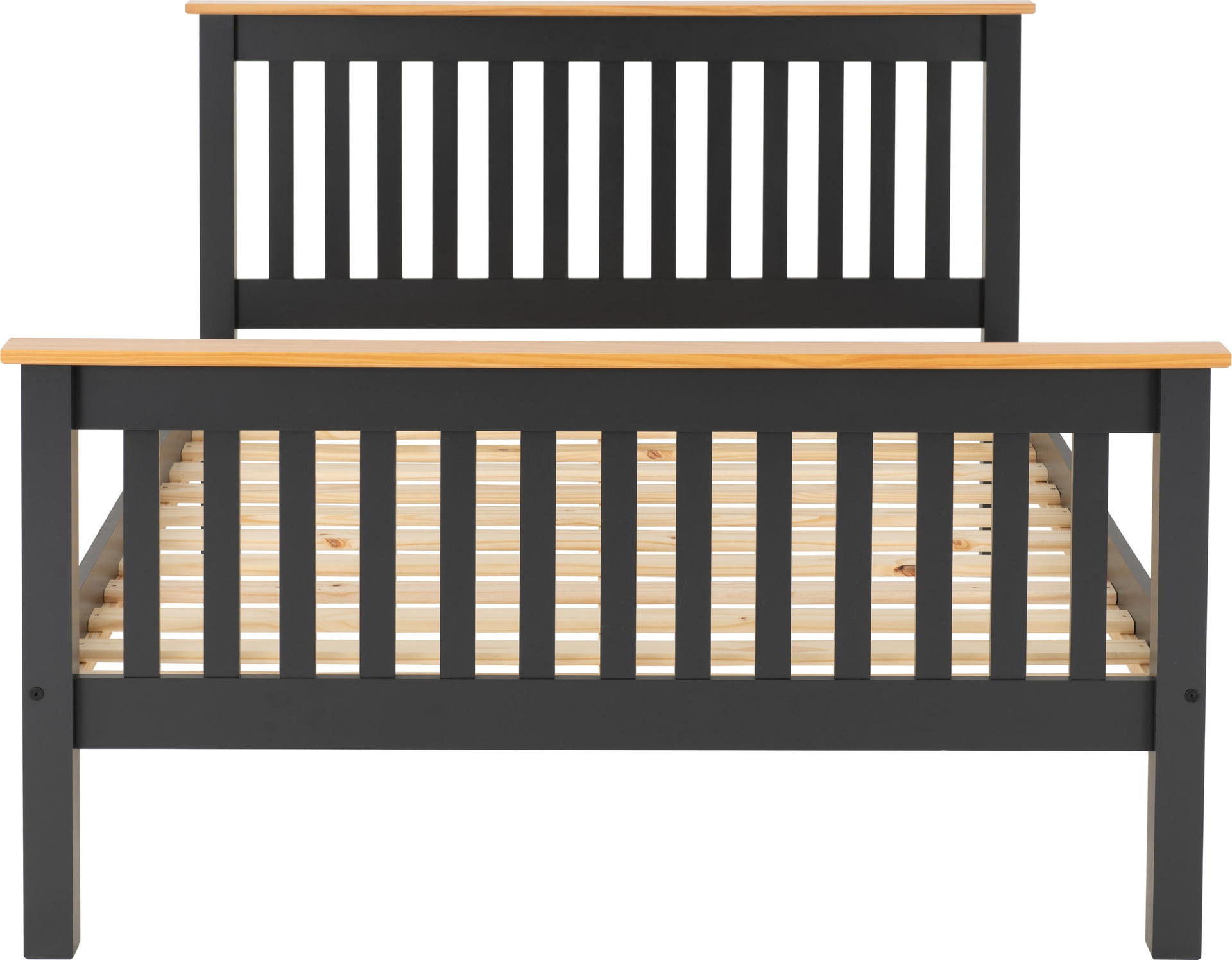Solid wood construction waxed finish Solid slatted base- which allows air to circulate around your mattress Shaker-styled slatted headboard and high footboard. The Monaco High Foot End Bed Frame offers the best in modest yet stylish bedroom design. Utilising the functional and timeless Shaker style aesthetic allows for further emphasis to be placed on providing you supportive and comfortable place to sleep every night. This strong bed frame is effortlessly effective in terms of both style and support.