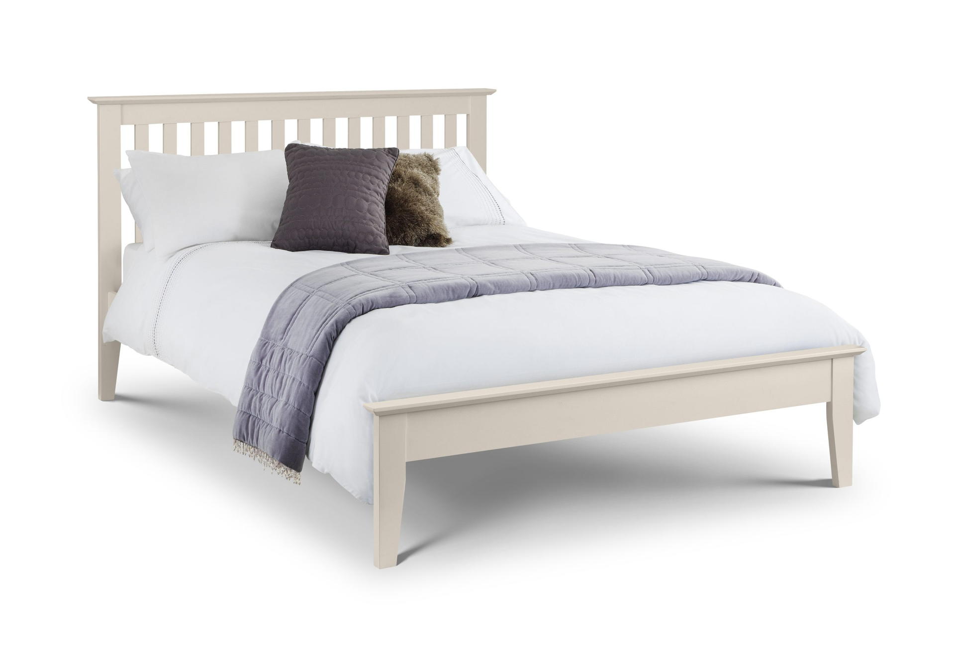 The Salerno Shaker bed has a timeless style with refined detailing, constructed from solid white oak, finished in a durable ivory lacquer. Salerno is a beautiful bed that fits with a range of decor, offering outstanding value for money. Featuring a sprung slatted base for extra comfort, and additional mattress life. Available in 90cm, 135cm, and 150cm sizes.