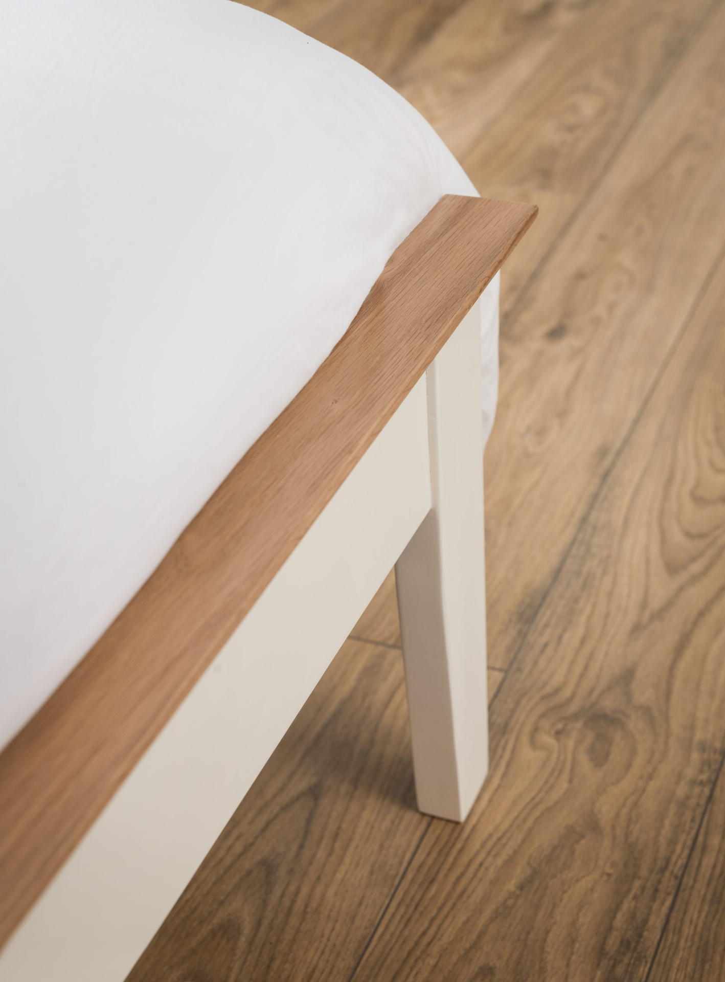 The Salerno Shaker bed has a timeless style with refined detailing, finished in a durable Ivory Lacquer with solid White Oak cappings.